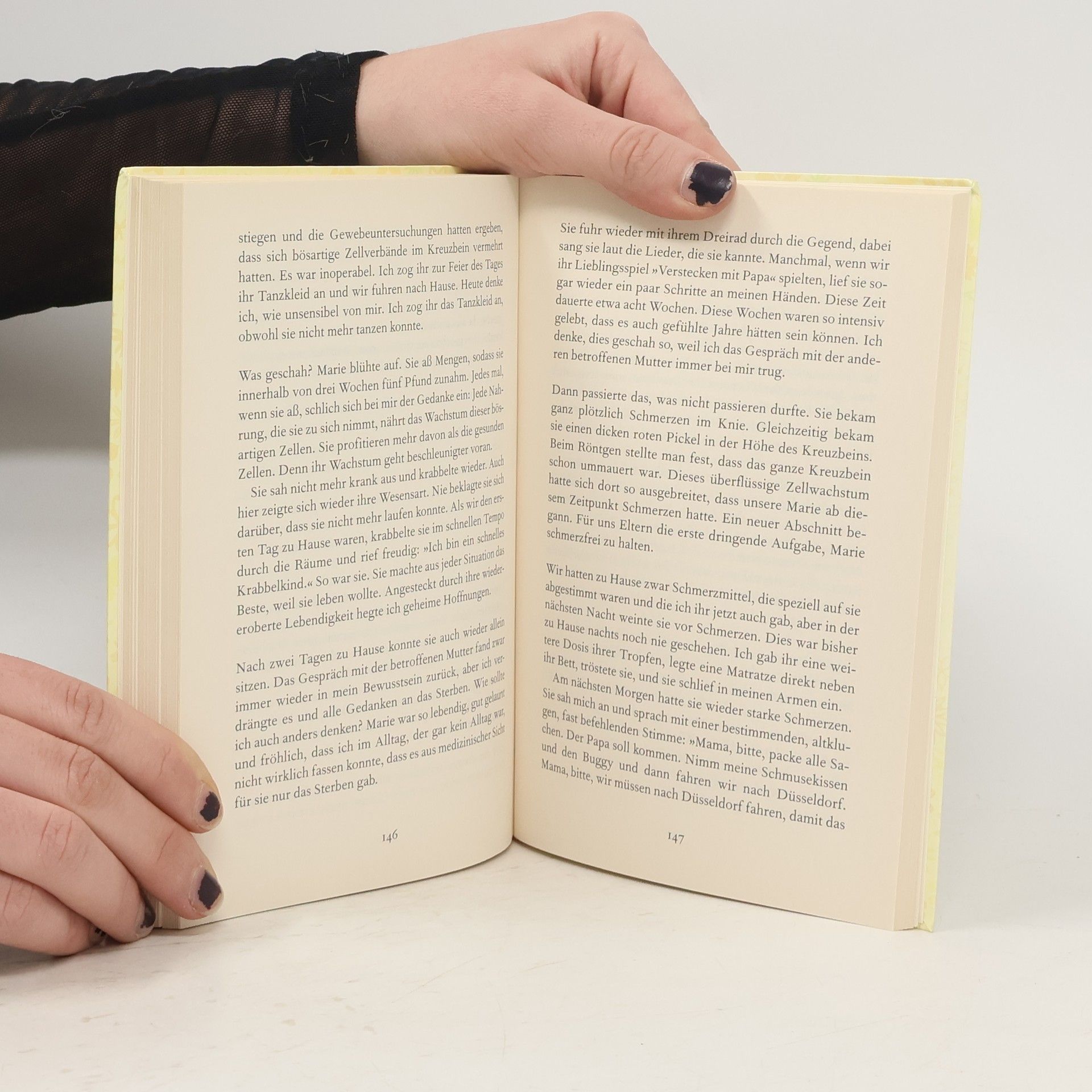 Marie, die aufgeweckte und lebensfrohe Zweijährige, erkrankt an Krebs. Für die Eltern ist es unfassbar. Ein dramatischer Kampf beginnt: gegen die Krankheit, gegen hoffnungslose Diagnosen- vergeblich! Mit drei Jahren stirbt die kleine Marie. In bewegenden Worten schildert die Autorin die Lebensgeschichte ihrer Tochter. Trotz Traurigkeit und erschütternden Erlebnissen berichtet sie vom großen Glück, Marie gehabt zu haben. Ein außergewöhnlich tapferes kleines Mädchen, das mit viel Freude in seinem kurzen Leben mehr entdeckte als viele Erwachsene.Ein emotionales Buch, das über die eigentliche Geschichte hinaus zutiefst Menschliches offenbart und Mut macht, zwischen Angst, Hoffnung und Verzweiflung intensive Glücksmomente zuzulassen.