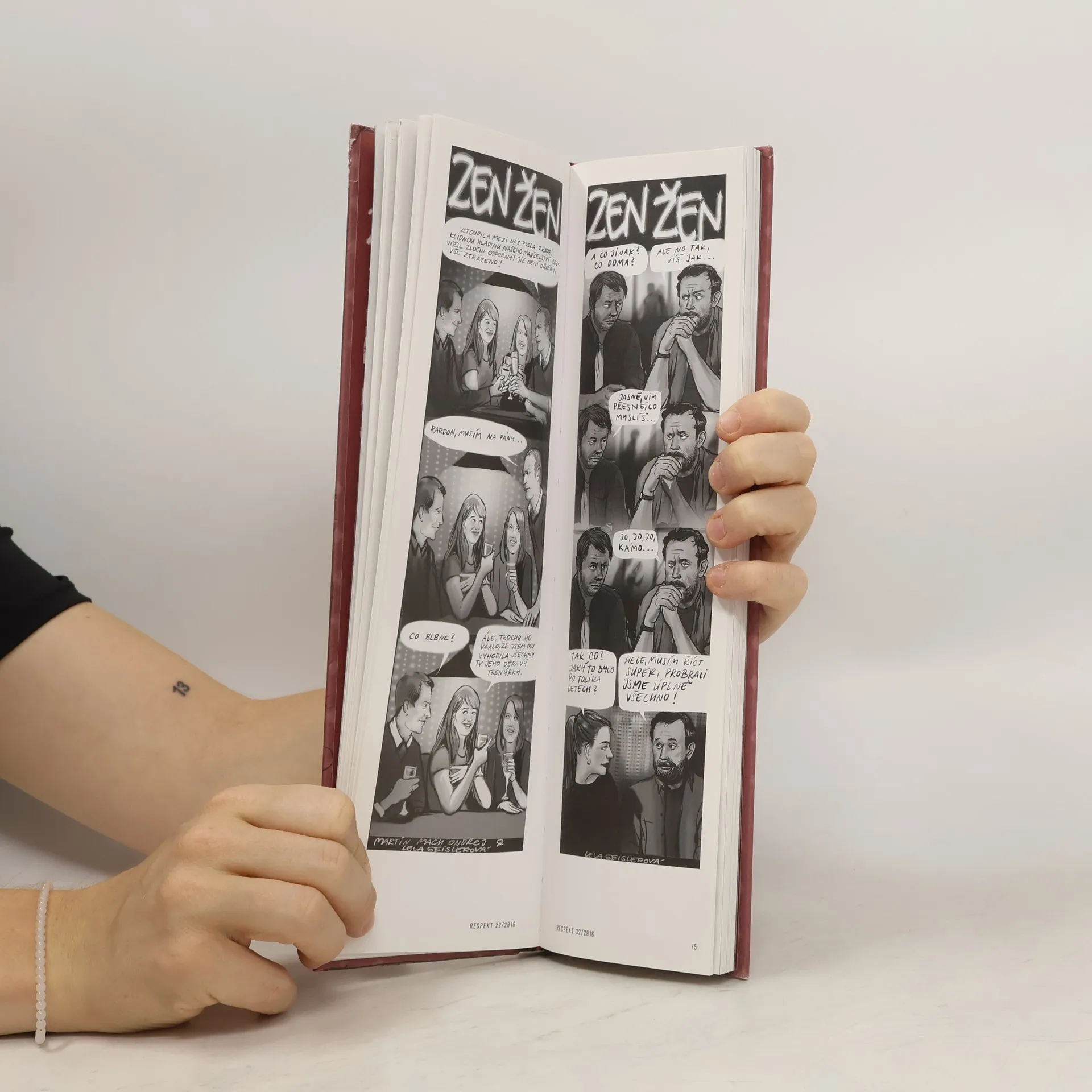 Slavný komiksový seriál Lely Geislerové vychází poprvé knižně a ve formátu, který se v žádné kabelce ani plátěné tašce neztratí. Kniha o ženách, ale nejen pro ženy. Kniha o tom, jaké to je, být dcerou, mámou, kamarádkou, manželkou nebo milenkou. Rozchody, filozofování nad vínem, milostné trapasy, zlobivé děti, nemožní partneři, cynické matky, a ještě trocha vína… Autorčin nadhled, humor a cit pro psychologický detail však důvěrně známé situace povyšují na zábavné etudy z nekonečného seriálu mezilidských vztahů. Přes dvě stovky epizod ze života moderní ženy představuje to nejlepší ze stripu, který několik let baví čtenářky a čtenáře týdeníku Respekt.