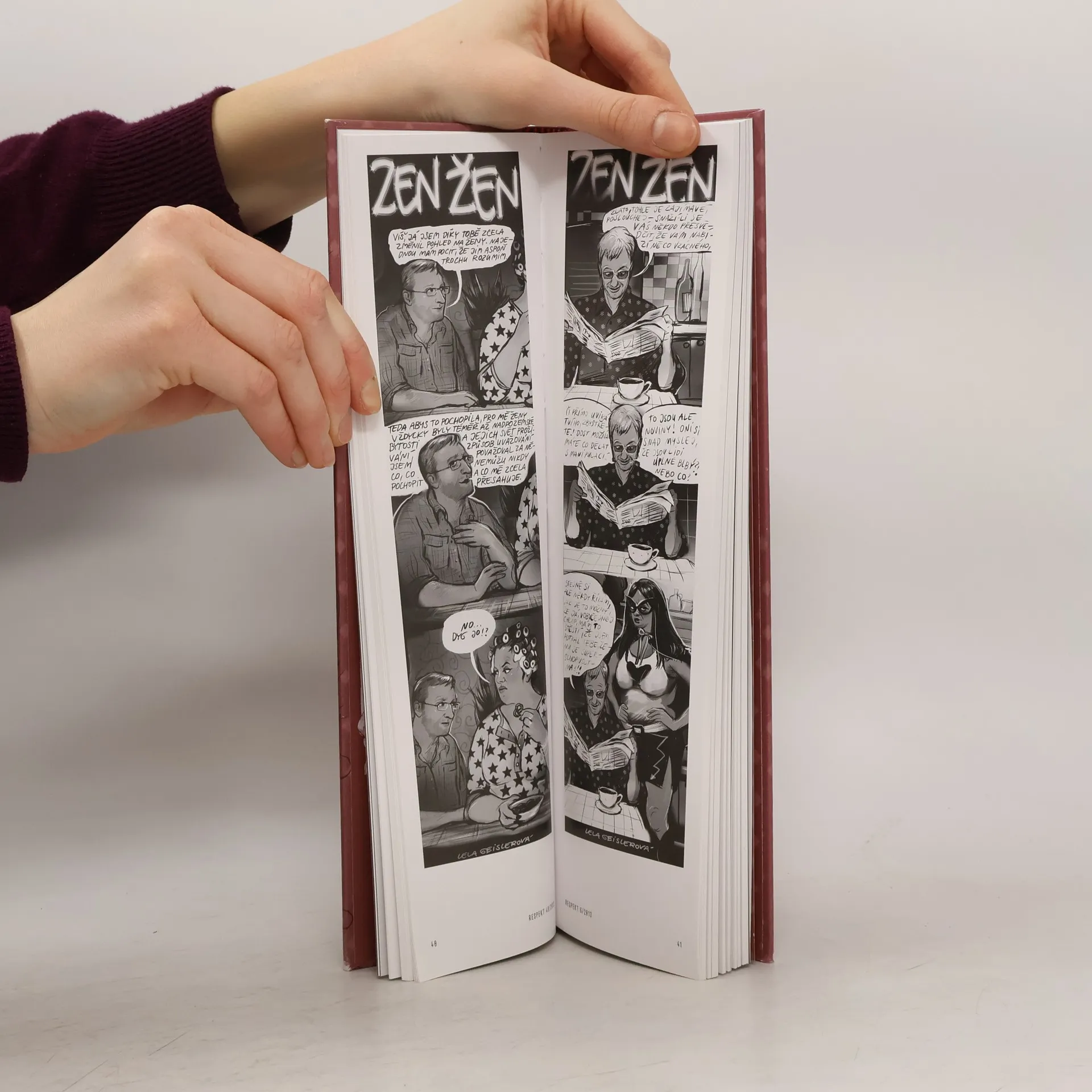 Slavný komiksový seriál Lely Geislerové vychází poprvé knižně a ve formátu, který se v žádné kabelce ani plátěné tašce neztratí. Kniha o ženách, ale nejen pro ženy. Kniha o tom, jaké to je, být dcerou, mámou, kamarádkou, manželkou nebo milenkou. Rozchody, filozofování nad vínem, milostné trapasy, zlobivé děti, nemožní partneři, cynické matky, a ještě trocha vína… Autorčin nadhled, humor a cit pro psychologický detail však důvěrně známé situace povyšují na zábavné etudy z nekonečného seriálu mezilidských vztahů. Přes dvě stovky epizod ze života moderní ženy představuje to nejlepší ze stripu, který několik let baví čtenářky a čtenáře týdeníku Respekt.