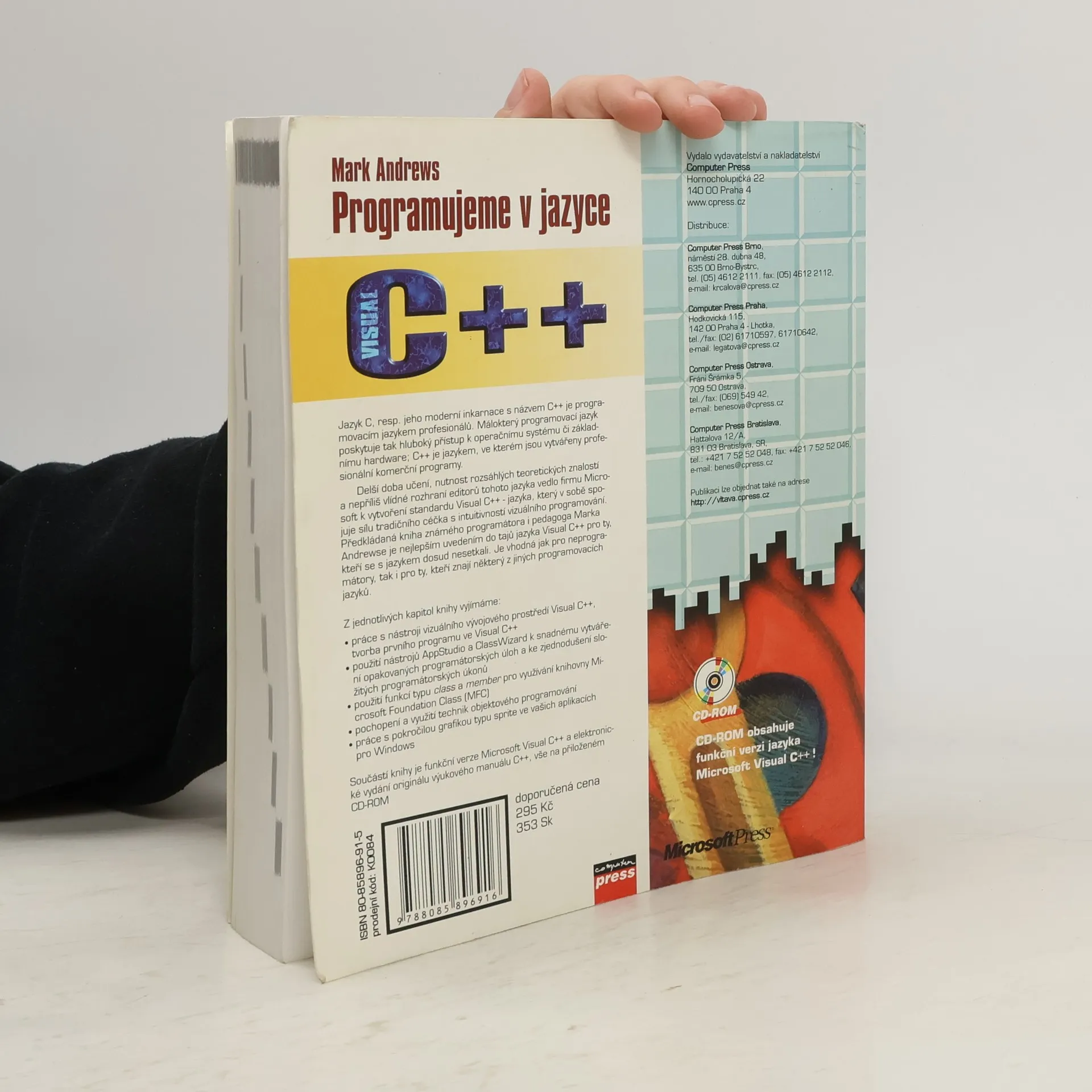Jazyk C, resp. jeho moderní inkarnace C++, je programovacím jazykem profesionálů, který poskytuje hluboký přístup k operačnímu systému a základnímu hardwaru. C++ je jazykem pro vytváření komerčních programů. Delší doba učení a náročnost teoretických znalostí vedly Microsoft k vytvoření standardu Visual C++, který kombinuje sílu tradičního C s intuitivním vizuálním programováním. Kniha od Marka Andrewse je ideálním úvodem do jazyka Visual C++ pro začátečníky i pro ty, kteří znají jiné programovací jazyky. Kapitoly zahrnují: - Práci s nástroji vizuálního vývojového prostředí Visual C++ a tvorbu prvního programu. - Použití AppStudio a ClassWizard pro usnadnění opakovaných úloh a složitých programátorských operací. - Využití funkcí typu class a member pro knihovnu Microsoft Foundation Class (MFC). - Pochopení a aplikaci technik objektového programování. - Práci s pokročilou grafikou typu sprite v aplikacích pro Windows. Kniha obsahuje funkční verzi Microsoft Visual C++ a elektronické vydání originálního výukového manuálu C++ na přiloženém CD-ROM.