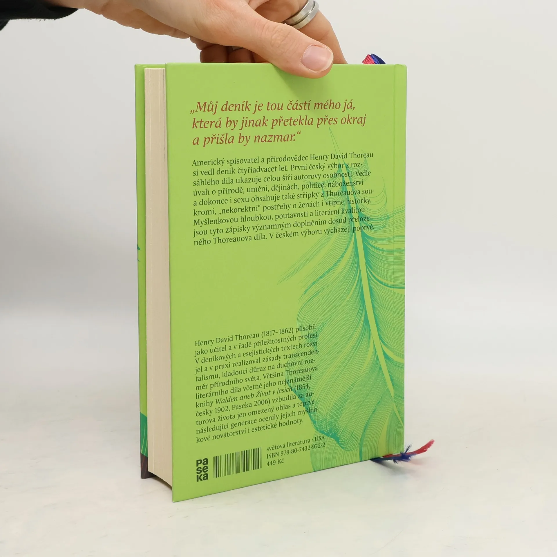 „Můj deník je částí mého já, která by jinak přetekla přes okraj a přišla nazmar,“ poznamenal si roku 1841 americký spisovatel a přírodovědec Henry David Thoreau do deníku, který si vedl čtyřiadvacet let. První český výbor z rozsáhlého díla ukazuje celou šíři autorovy osobnosti. Vedle úvah o přírodě, umění, dějinách, politice, náboženství a dokonce i sexu obsahuje také střípky z Thoreauova soukromí, „nekorektní“ postřehy o ženách i vtipné historky. Myšlenkovou hloubkou, poutavostí a literární kvalitou jsou tyto zápisky významným doplněním dosud přeloženého Thoreauova díla.