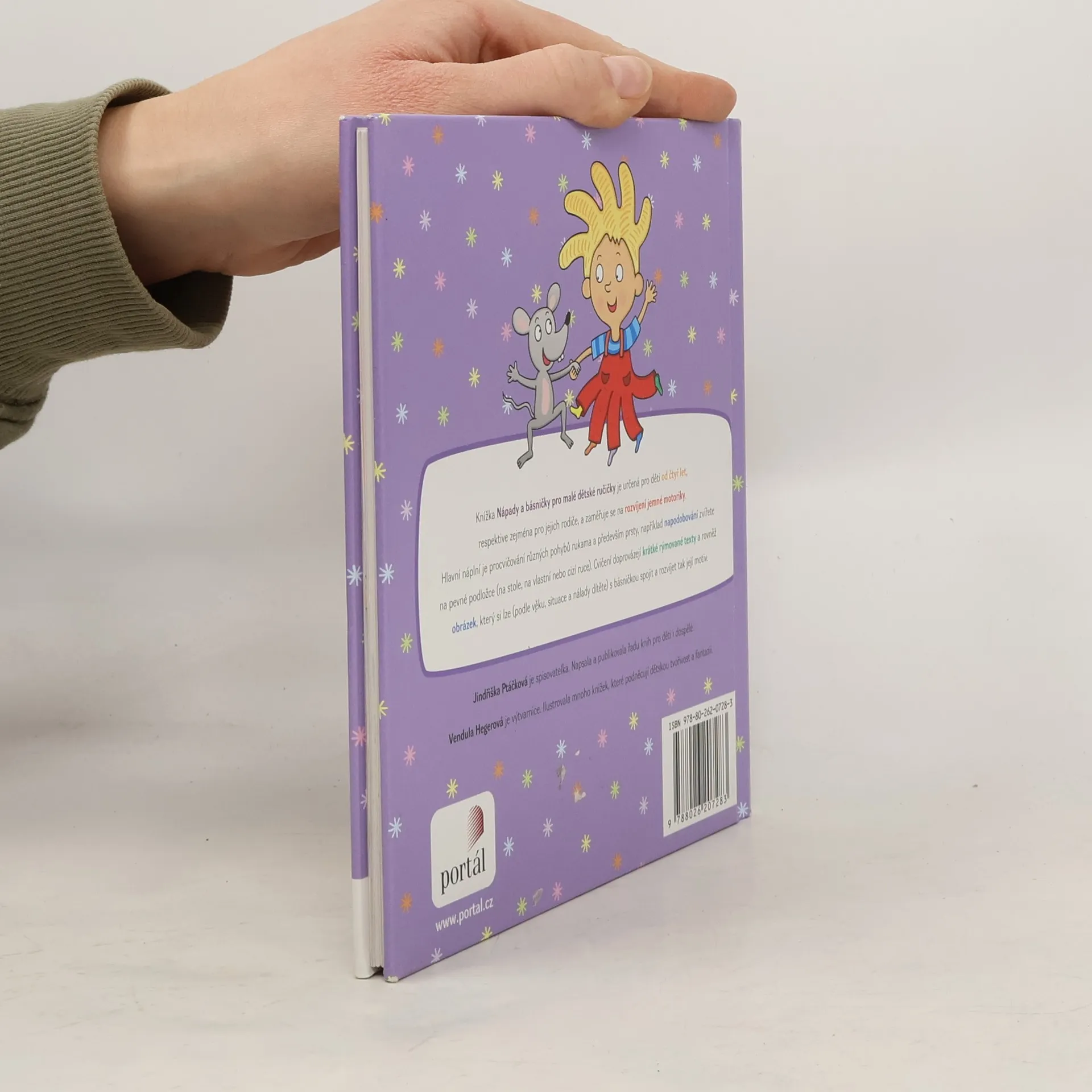Publikace je určená pro děti od čtyř let, respektive zejména pro jejich rodiče, a zaměřuje se na rozvíjení jemné motoriky. Jedná se o procvičování různých pohybů rukama a především prsty, například napodobování zvířete na pevné podložce (na stole, na vlastní nebo cizí ruce). Cvičení doprovázejí krátké rýmované texty a rovněž obrázek, který si lze (podle věku, situace a nálady dítěte) s básničkou spojit a rozvíjet tak motiv básničky.