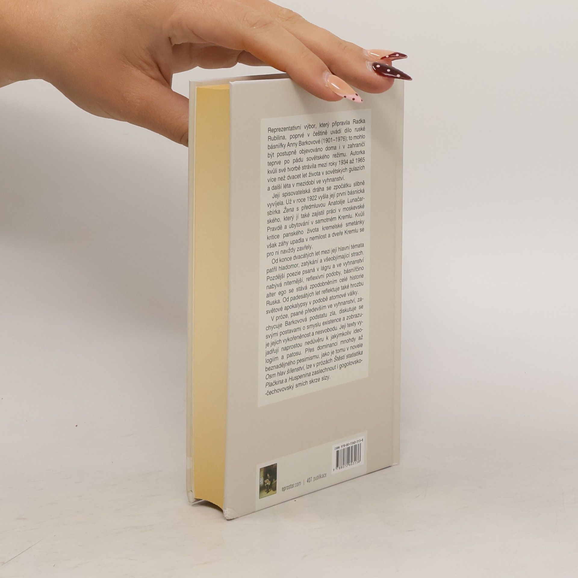 Reprezentativní výbor, který připravila Radka Rubilina, poprvé v češtině uvádí dílo ruské básnířky Anny Barkovové (1901–1976); to mohlo být postupně objevováno doma i v zahraničí teprve po pádu sovětského režimu. Autorka kvůli své tvorbě strávila mezi roky 1934 až 1965 více než dvacet let života v sovětských gulazích a další léta v mezidobí ve vyhnanství.