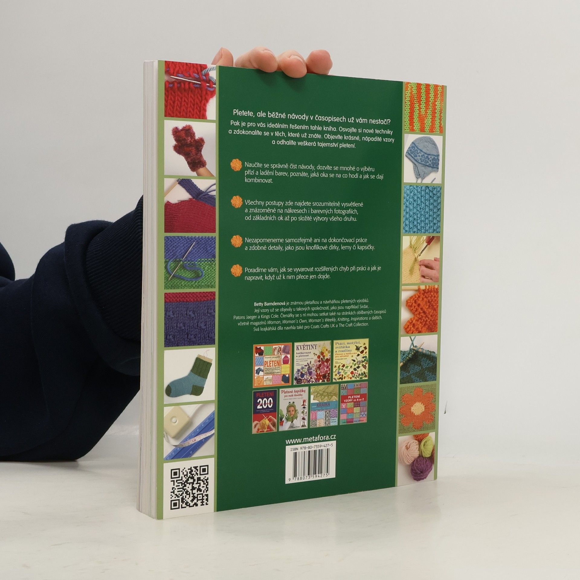 Více jak 300 rad, pracovních postupů a nápadů... Pletete, ale běžné návody v časopisech už vám nestačí? Pak je pro vás ideálním řešením tahle kniha. Osvojíte si nové techniky a zdokonalíte se v těch, které už znáte. Objevíte krásné, nápadité vzory a odhalíte veškerá tajemství pletení. Naučíte se správně číst návody, dozvíte se mnohé o výběru přízí a kombinování barev, poznáte, jaká oka se na co hodí a jak se dají kombinovat. Všechny postupy zde najdete srozumitelně vysvětlené a znázorněné na nákresech i barevných fotografiích, od základních ok až po složité výtvory všeho druhu. Nezapomeneme samozřejmě ani na dokončovací práce a zdobné detaily, jako jsou knoflíkové dírky, lemy či kapsičky. Poradíme vám, jak se vyvarovat rozšířených chyb při práci, a jak je napravit, když už k nim přece jen dojde.