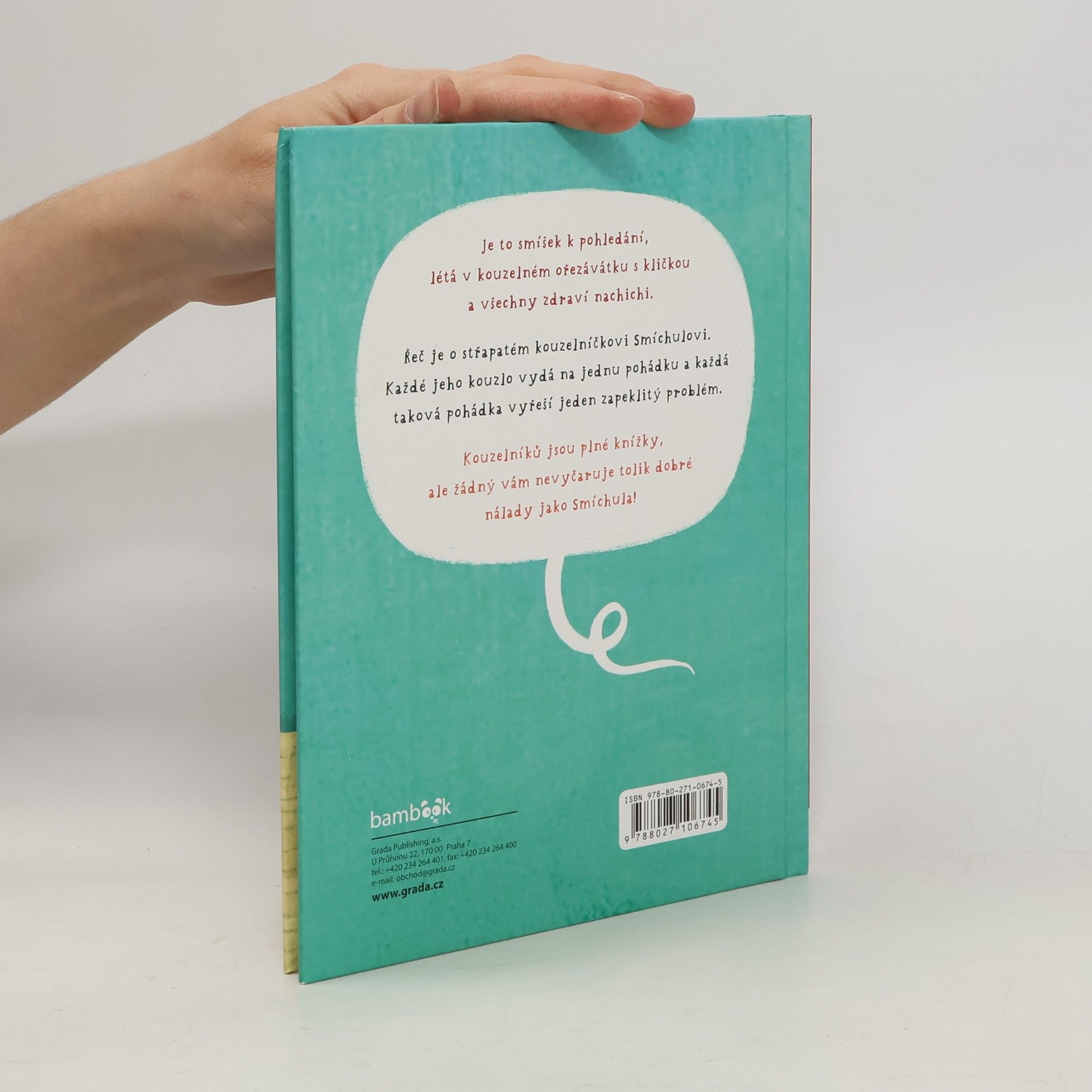 Kouzelníků jsou plné knížky, ale žádný vám nevyčaruje tolik dobré nálady jako Smíchula! Smíchula je malý kouzelníček, ale jeho kouzla mají velkou moc. Kam tenhle střapatý smíšek přiletí, tam je veselo. Všichni ho mají rádi. A jak by taky ne, vždyť Smíchula umí svým čarováním vyřešit každý problém. Pomohl větru spravit flétnu, vyléčil nemocnou Terezku, naučil létat dědu Zoufalíka a určitě pobaví všechny milovníky pohádek.