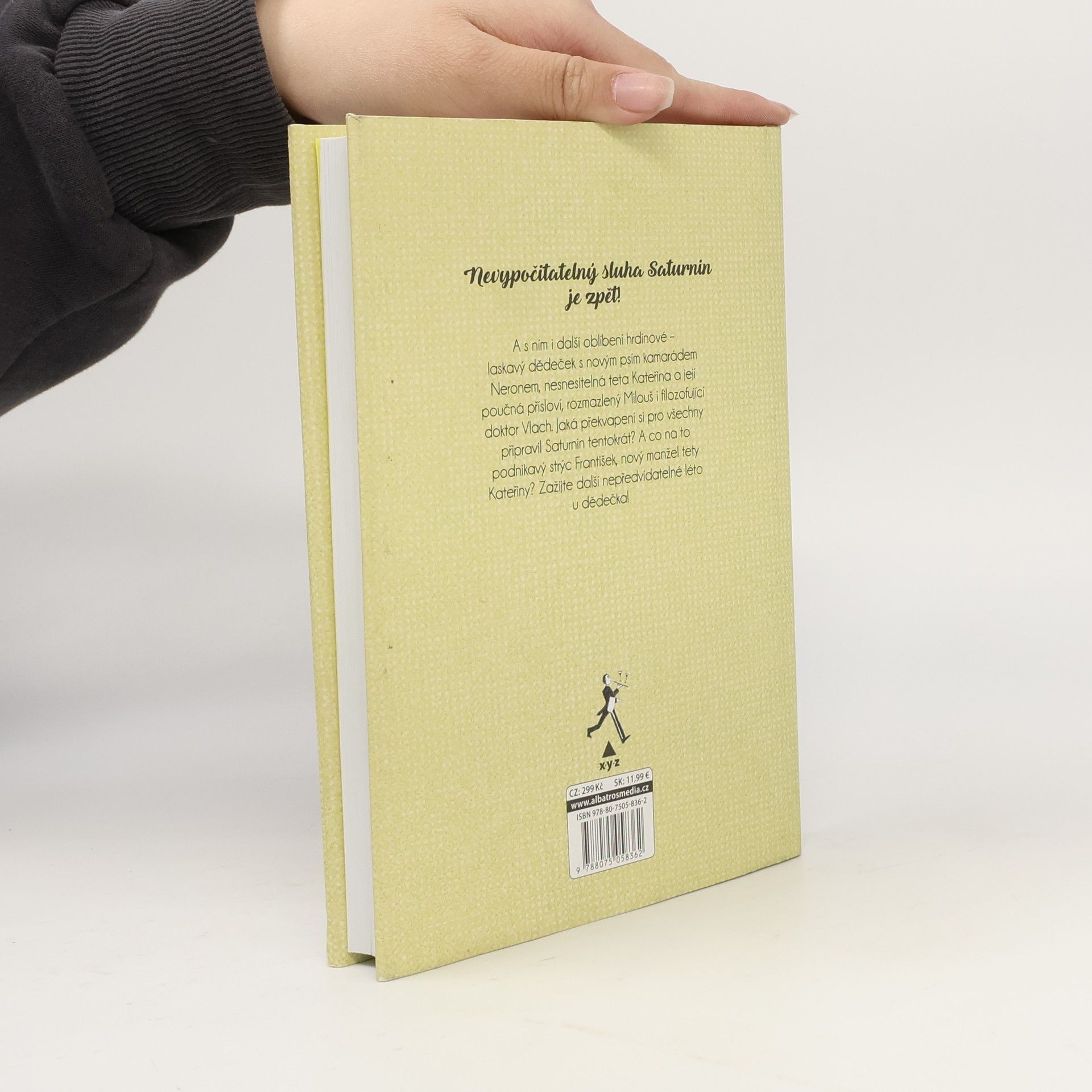„Slavná humoristická kniha, která baví již několik generací čtenářů, pokračuje!“ Nevypočitatelný sluha Saturnin je zpět! A s ním i další oblíbení hrdinové – laskavý dědeček s novým psím kamarádem Neronem, nesnesitelná teta Kateřina a její poučná přísloví, rozmazlený Milouš i filozofující doktor Vlach. Jaká překvapení si pro všechny připravil Saturnin tentokrát? A co na to podnikavý strýc František, nový manžel tety Kateřiny? Zažijte další nepředvídatelné léto u dědečka!