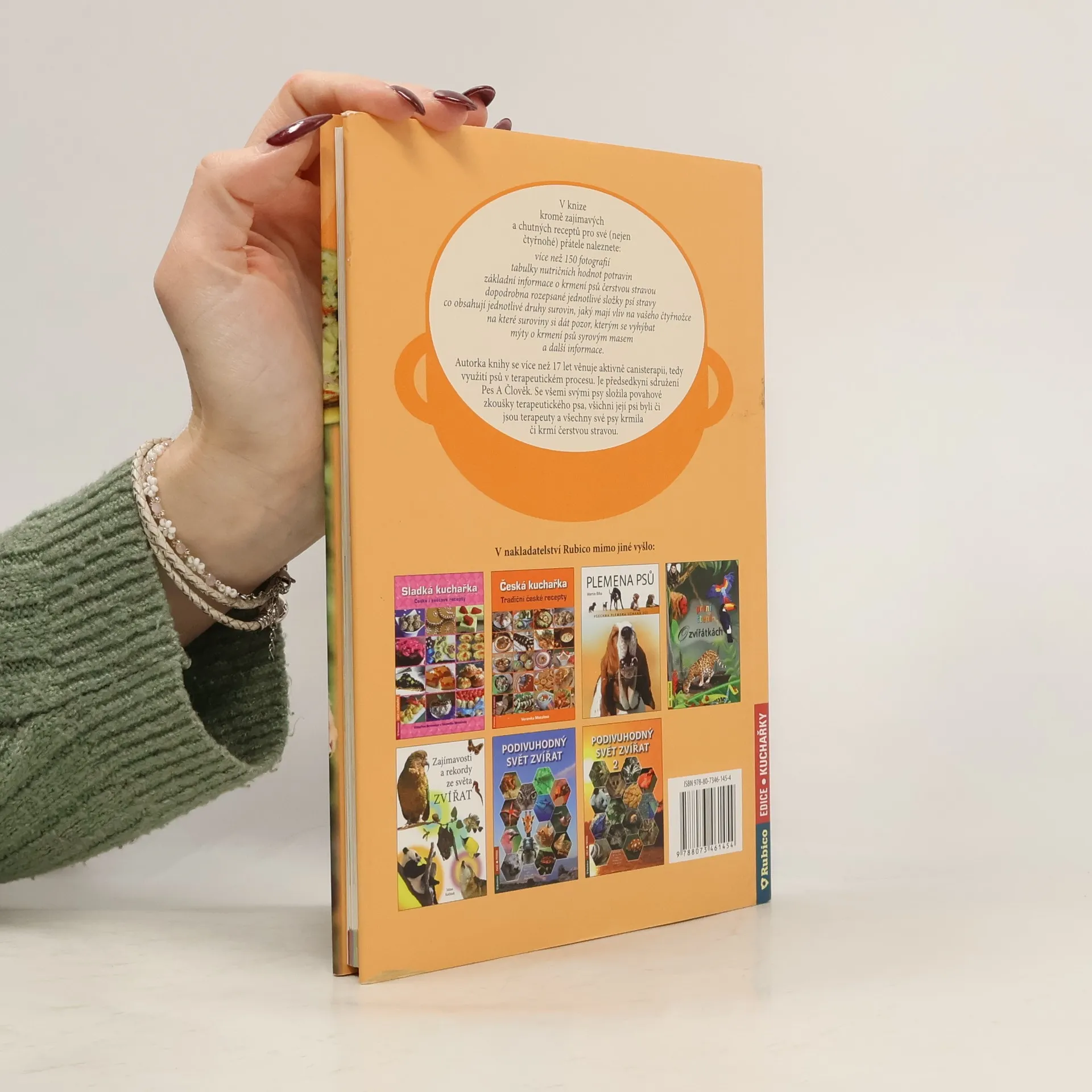 Kniha je napůl kuchařkou s recepty a napůl praktickým rádcem, jak vyživovat psy přirozenou stravou. V knize kromě zajímavých a chutných receptů pro své (nejen čtyřnohé) přátele naleznete více než 150 fotografií, tabulky nutričních hodnot potravin, základní informace o krmení psů čerstvou stravou, dopodrobna rozepsané jednotlivé složky psí stravy, informace, co obsahují jednotlivé druhy surovin a jaký mají vliv na vašeho čtyřnožce, na které suroviny si dát pozor, kterým se vyhýbat, mýty o krmení psů syrovým masem a další rady. Autorka knihy se více než 17 let věnuje aktivně canisterapii, tedy využití psů v terapeutickém procesu. Je předsedkyní sdružení Pes A Člověk. Se všemi svými psy složila povahové zkoušky terapeutického psa, všichni její psi byli či jsou terapeuty a všechny své psy krmila či krmí čerstvou stravou.