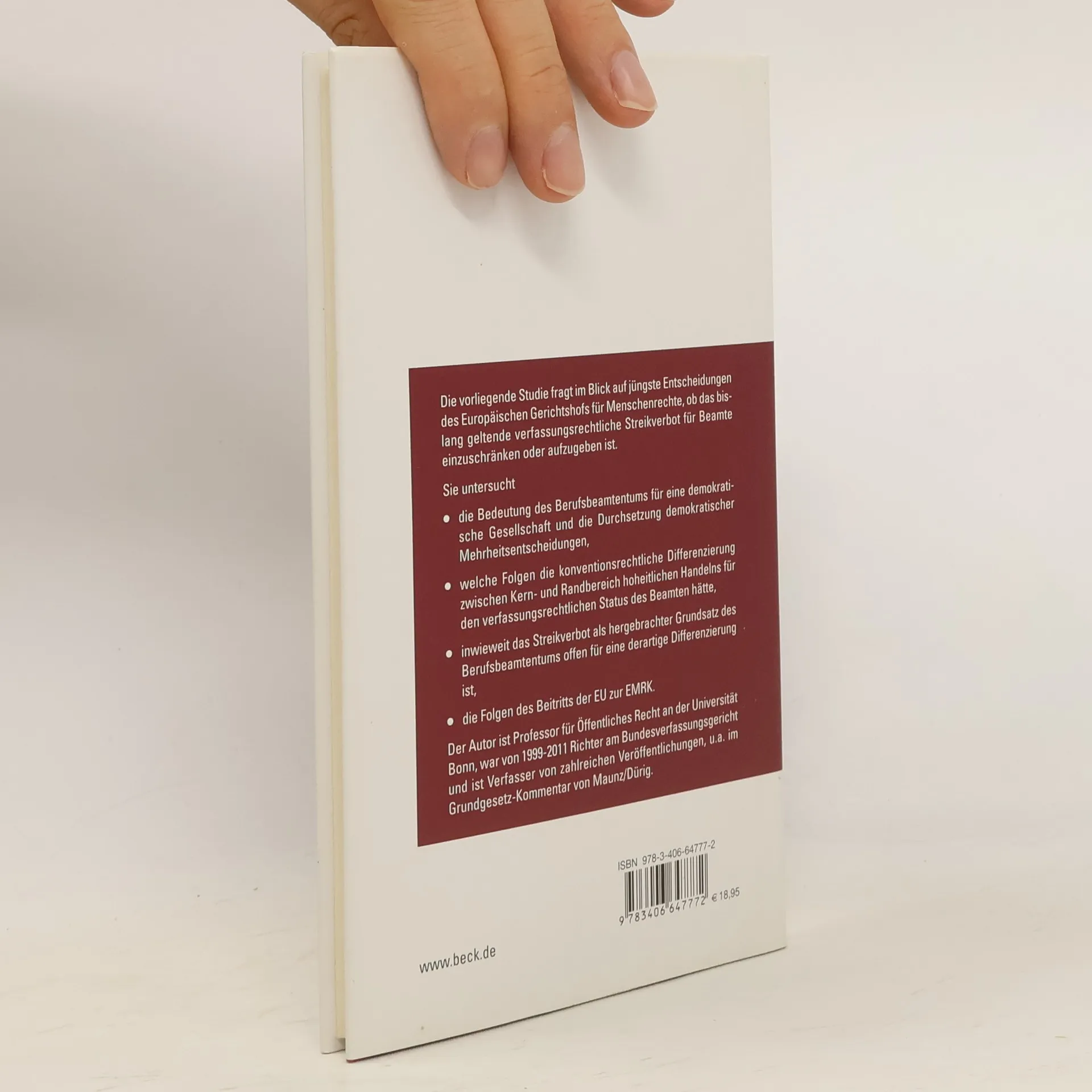 Zum Werk Die Studie ist ein Rechtsgutachten im Auftrag des Deutschen Beamtenbundes. Sie untersucht im Blick auf jüngste Entscheidungen des Europäischen Gerichtshofs für Menschenrechte, ob das bislang geltende Streikverbot für Beamte einzuschränken oder aufzugeben ist. Vorteile auf einen Blick - Darstellung der Bedeutung des Berufsbeamtentums in der Bundesrepublik Deutschland - Untersuchung der Folgen des Beitritts der EU zur EMRK im Hinblick auf das beamtenrechtliche Streikverbot Zum Autor Prof. Dr. Dr. Udo Di Fabio ist Richter des Bundesverfassungsgerichts a. D. und Professor an der Universität Bonn (Direktor des Instituts für Öffentliches Recht). Er ist mit zahlreichen Veröffentlichungen auf dem Gebiet des Staats- und Verfassungsrechts an die Öffentlichkeit getreten. Zielgruppe Für Beamte, Richter, Behördenleiter, Rechtswissenschaftler, Studierende und Referendare, interessierte Staatsbürger.
