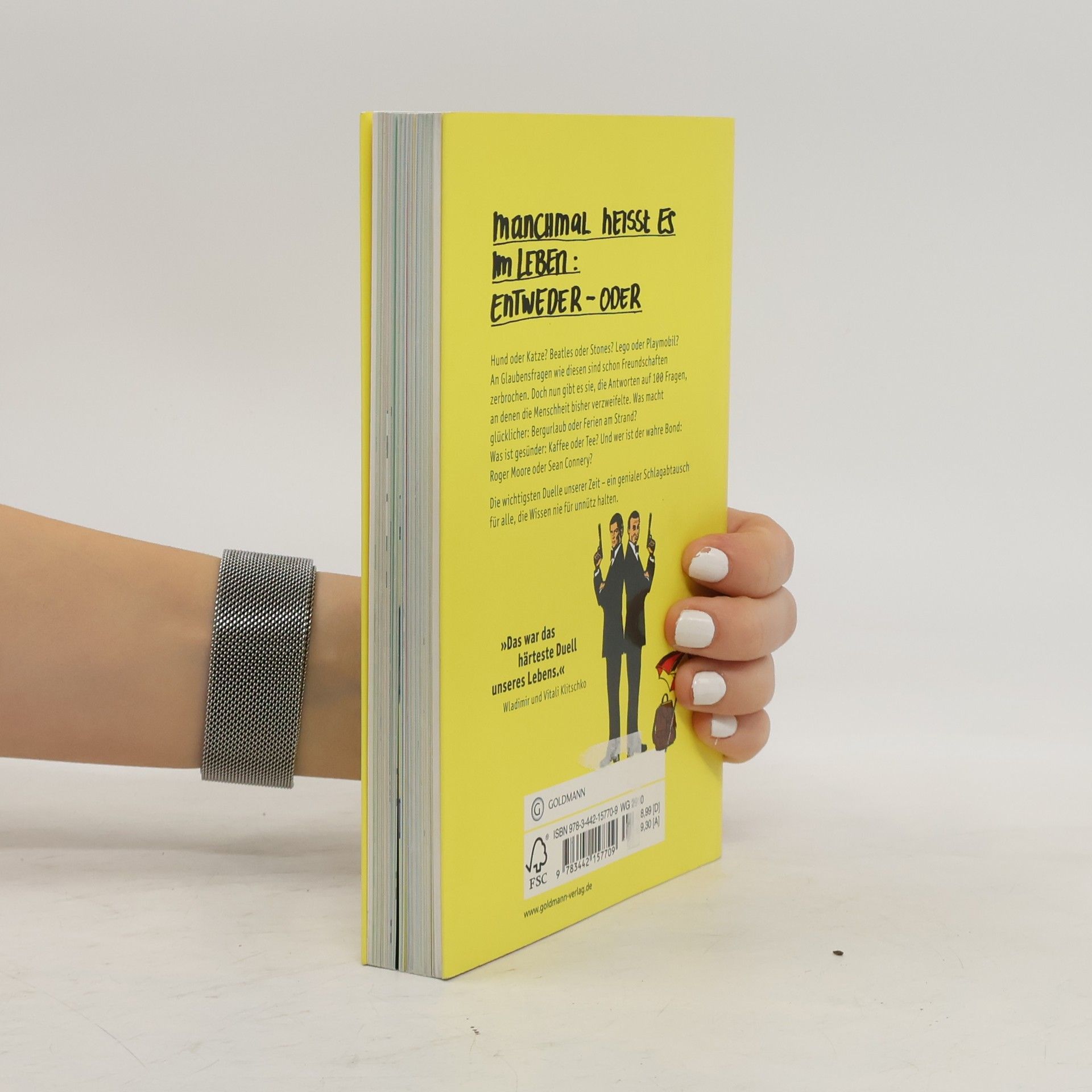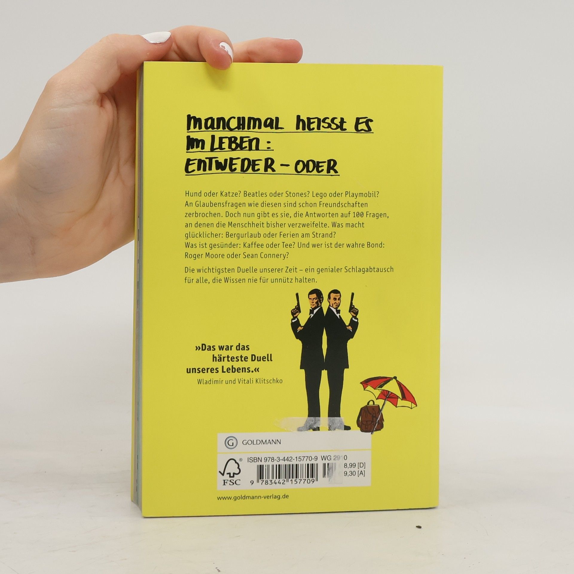 Was wir schon immer über George Clooney wissen wollten – und warum Brad Pitt trotzdem heißer ist! Manchmal heißt es im Leben: entweder – oder. Da zählt kein halbherziges „Ach, kommt darauf an“, kein lauwarmes „Du, irgendwie sind beide ganz okay“. Zu gewissen Fragen braucht es eine klare Haltung: Hund oder Katze? Batman oder Superman? Tee oder Kaffee? Ernie oder Bert? Und wer ist ein für alle Mal der heißeste Schauspieler auf Erden: George Clooney oder Brad Pitt? Mit überzeugenden Argumenten, faszinierendem, manchmal auch bizarrem Hintergrundwissen und einer gehörigen Portion schrägen Humors beantworten die Autoren 100 Fragen, an denen die Menschheit bisher verzweifelte.