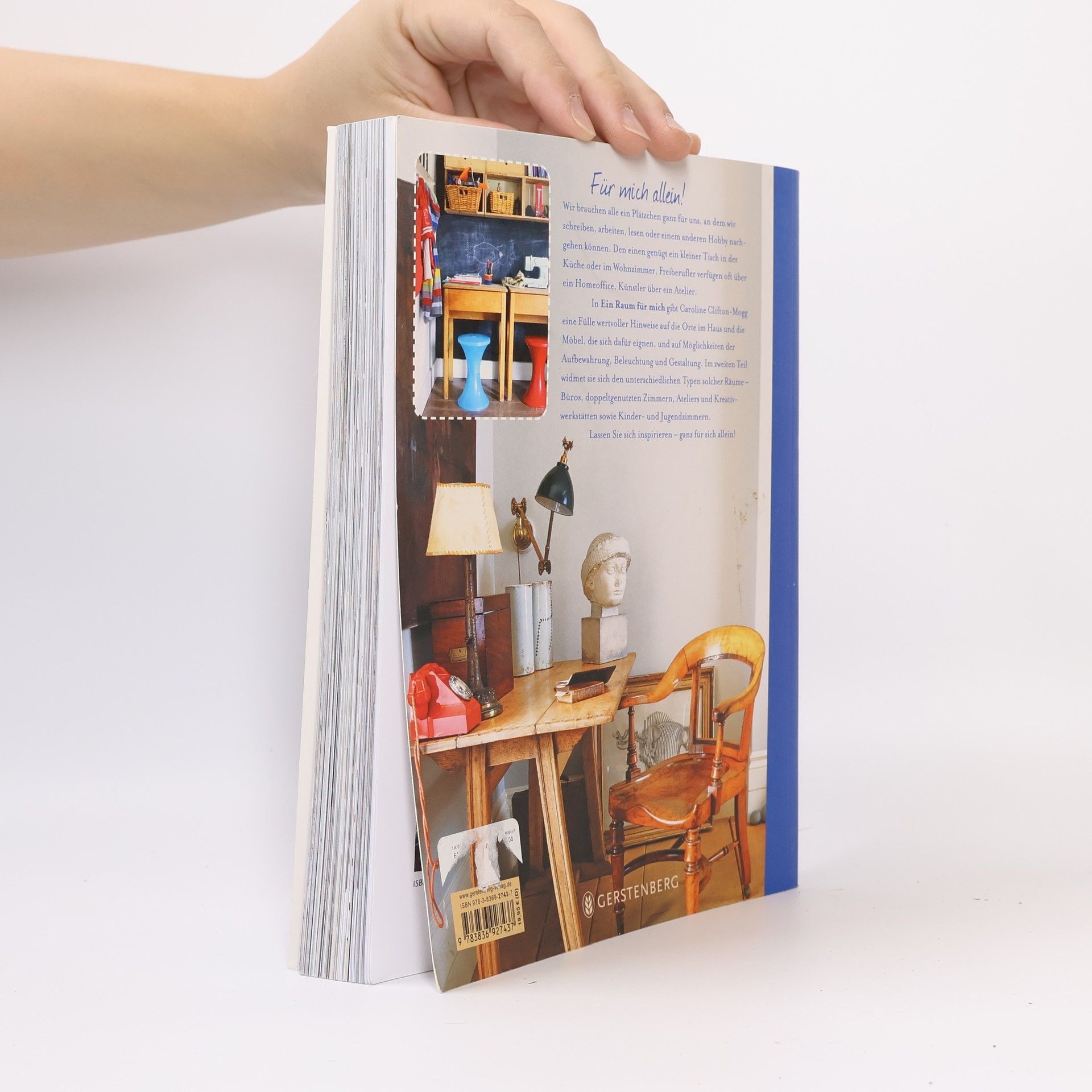 Wir brauchen alle ein Plätzchen ganz für uns, an dem wir schreiben, arbeiten, lesen oder einem anderen Hobby nachgehen können. Den einen genügt ein kleiner Tisch in der Küche oder im Wohnzimmer, Freiberufler verfügen oft über ein Homeoffice, Künstler über ein Atelier. In ihrem neuen Bildband gibt Caroline Clifton-Mogg eine Fülle wertvoller Hinweise: auf die Orte im Haus und die Möbel, die sich dafür eignen. Und auf Möglichkeiten der Aufbewahrung, Beleuchtung und Gestaltung. Im zweiten Teil widmet sie sich den unterschiedlichen Typen solcher Räume - Büros, doppeltgenutzten Zimmern, Ateliers und Kreativwerkstätten sowie Kinder- und Jugendzimmern.
