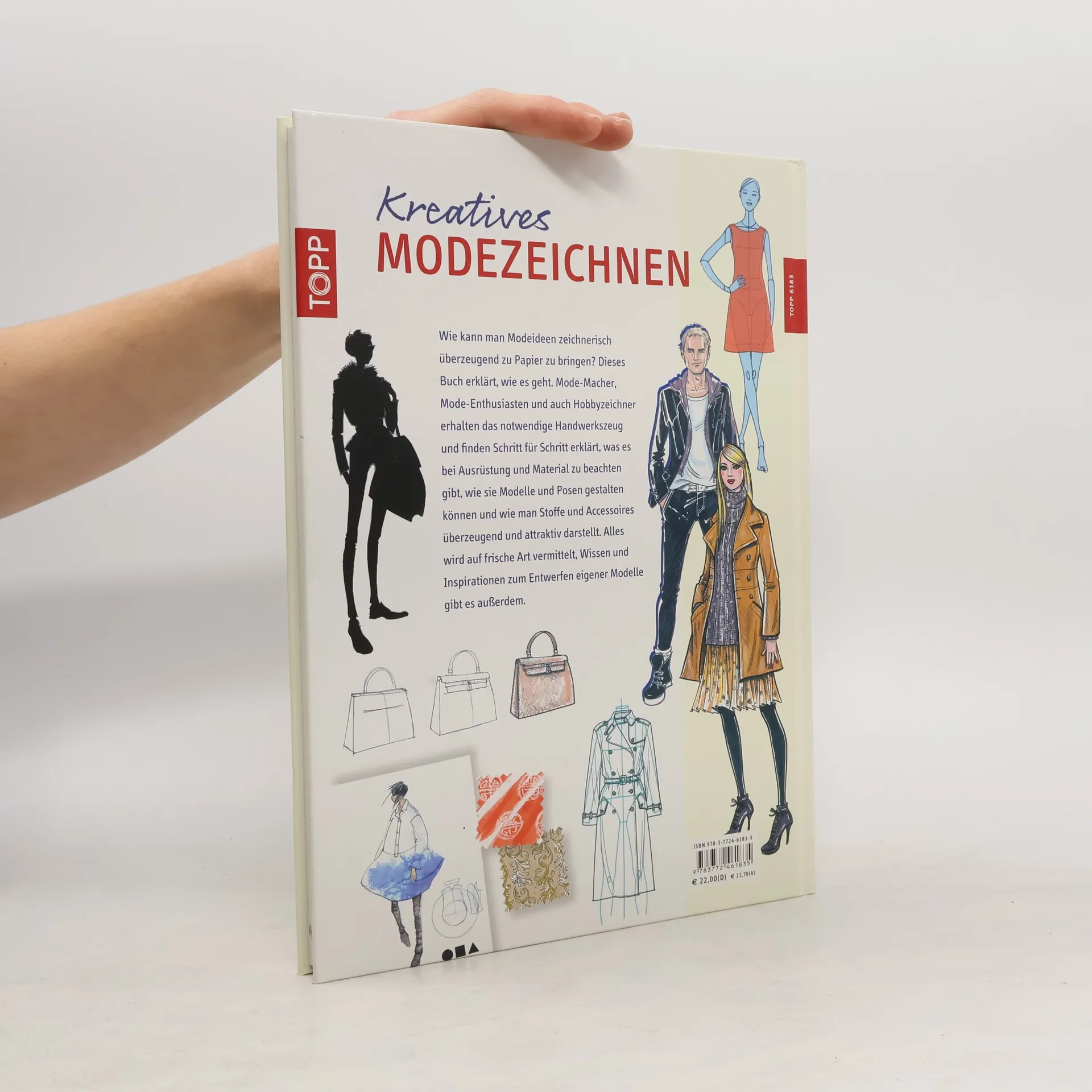 Kreatives Modezeichnen. Grundlagen, Stile und Gestaltungsideen. Von der Zeichnung eines Körpers zur Darstellung von Stoffen, Kleidung und Accessoires. Material, Techniken, Wissen und Heranführung an den eigenen Stil. Extrakapitel mit Modeillustrationen von namhaften Designern. 160 Seiten, 21 x 29,7 cm, Hardcover.