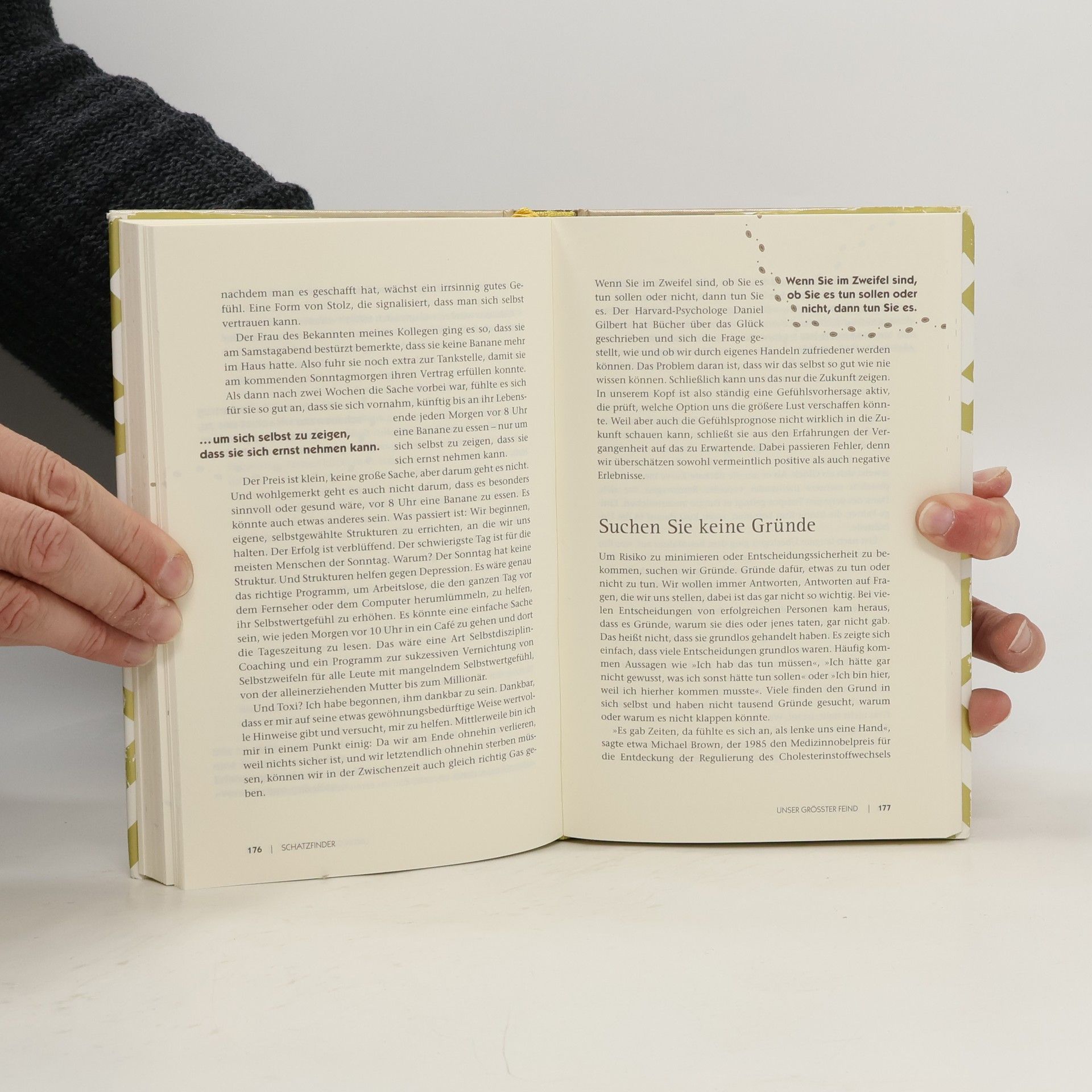 Mit diesem Buch erhalten Sie das E-Book inklusive! Vielleicht sind Sie viel besser, als Sie denken. Vielleicht schlummern ungeahnte Schätze und Talente in Ihnen. Vielleicht sollten Sie einfach mal dieses Buch lesen, um es herauszufinden. Hermann Scherer zeigt Ihnen, wie Sie sich aus festgefahrenen Strukturen lösen und mehr aus Ihrem Leben machen. Es ist ganz einfach: Seien Sie anders als der Durchschnitt. Werden Sie Regelbrecher und geben Sie Ihrem Leben wieder mehr Lebendigkeit. Machen Sie gute Deals und tauschen Sie dabei das Wertvollste, was Sie haben: Ihre Zeit. Entwickeln Sie eine konkrete Vorstellung von sich in der Zukunft. Zum Beispiel so: Stellen Sie sich vor, Sie sitzen in einem gemütlichen Sessel und lesen. Es ist das Buch „Schatzfinder“ von Hermann Scherer. Sie lächeln.
