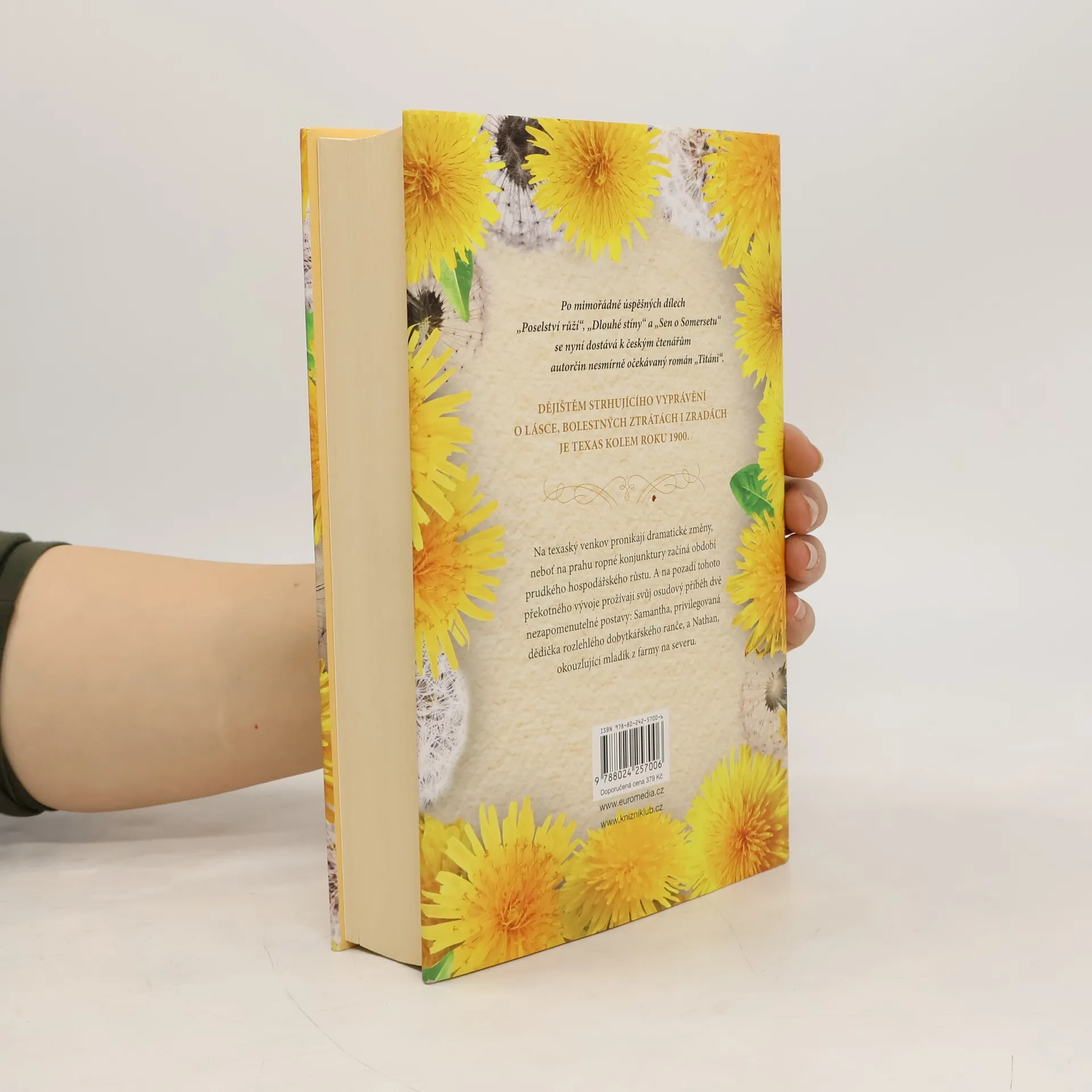 Dějištěm strhujícího vyprávění o lásce, bolestných ztrátách i zradách je Texas, který se kolem roku 1900 ocitá na prahu ropné konjunktury, jež odstartuje období prudkého hospodářského růstu. Na pozadí dramatických změn pronikajících na texaský venkov prožívají svůj osudový příběh dvě nezapomenutelné postavy: Samantha, privilegovaná dědička rozlehlého dobytkářského ranče, a Nathan, okouzlující mladík z farmy na severu.