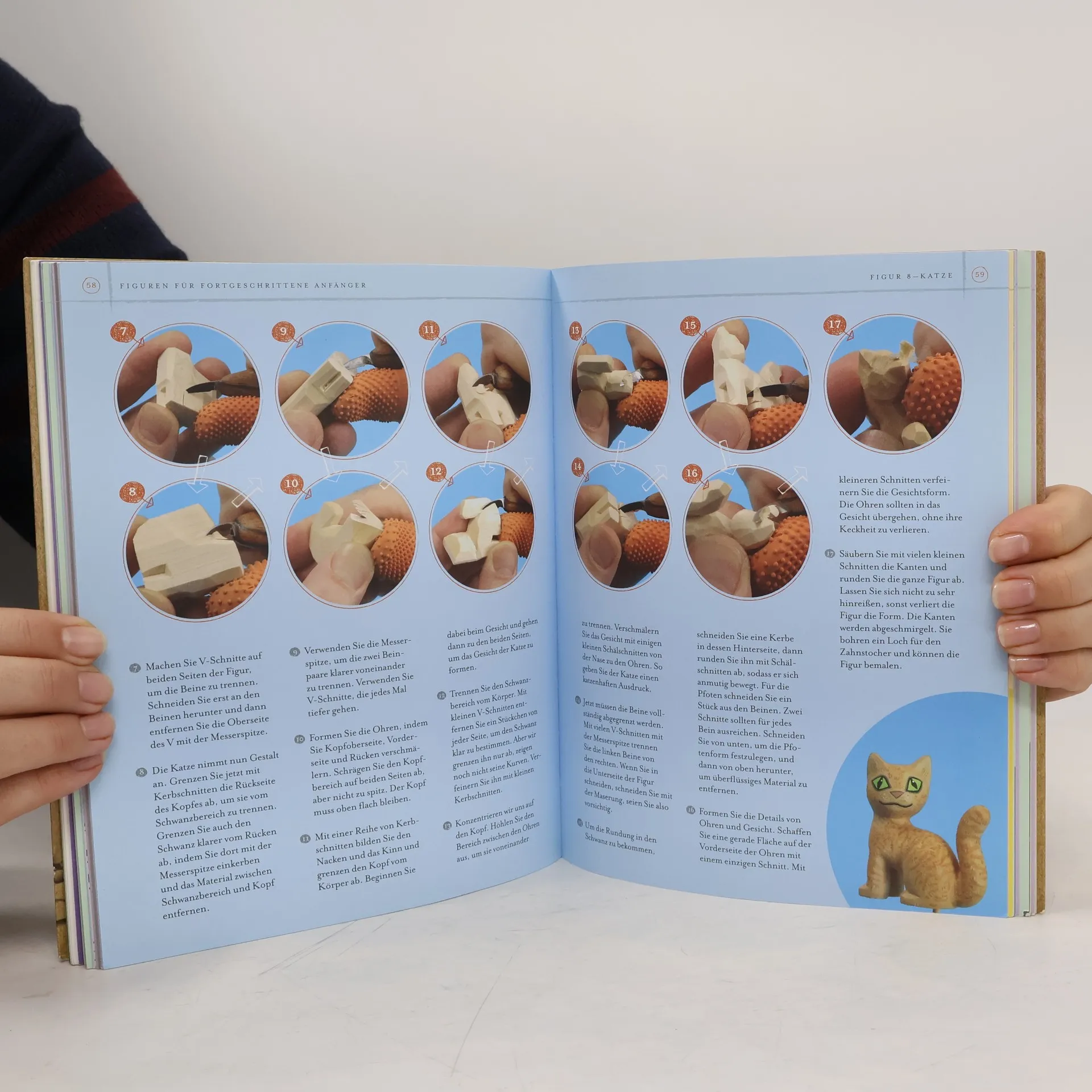 Schnitzen ist nicht nur ein kreatives und günstiges, sondern, mit den richtigen Hilfsmitteln und der richtigen Anleitung, auch ein einfaches Hobby, bei dem sich schnell Erfolge zeigen. Mit einem scharfen Messer, ein bisschen Übung und noch dem kleinsten Holzstück lassen sich tolle, niedliche und lustige Figuren herstellen. Keine Angst – stundenlang im Holzschuppen zu sitzen wie ein berüchtigter Lausejunge ist dafür nicht vonnöten! Schon in weniger als einer Stunde werden kleine Tiere und andere Figürchen flott geschnitzt. Steve Tomashek führt auf zeitgemäße und verständliche Weise an dieses Hobby heran: Von den ersten einfachen Schnitzern in weichem Material wie Gemüse oder Seife hin zu weiterführenden und anspruchsvolleren Techniken für verschiedenste Holzarten. Außerdem gibt es Anleitungen zum Schmiergeln, Anmalen und Verzieren der Figuren.