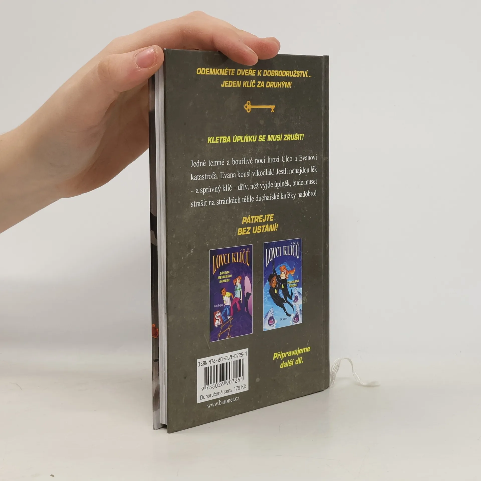 Cleo a Evan mají tajemství. Sbírku knih tak nebezpečných, že musí zůstat pod zámkem. Ve stránkách jedné z nich zmizela jejich oblíbená knihovnice. Teď mají za úkol najít klíč, který ji osvobodí. NĚKDO MUSÍ ZLOMIT KLETBU ÚPLŇKU! Za temné a bouřlivé noci hrozí Cleo a Evanovi pohroma. Evana kousl vlkodlak! Jestli nenajdou lék – a správný klíč – než vyjde úplněk, bude se nadobro plížit po stránkách tohohle strašidelného příběhu!