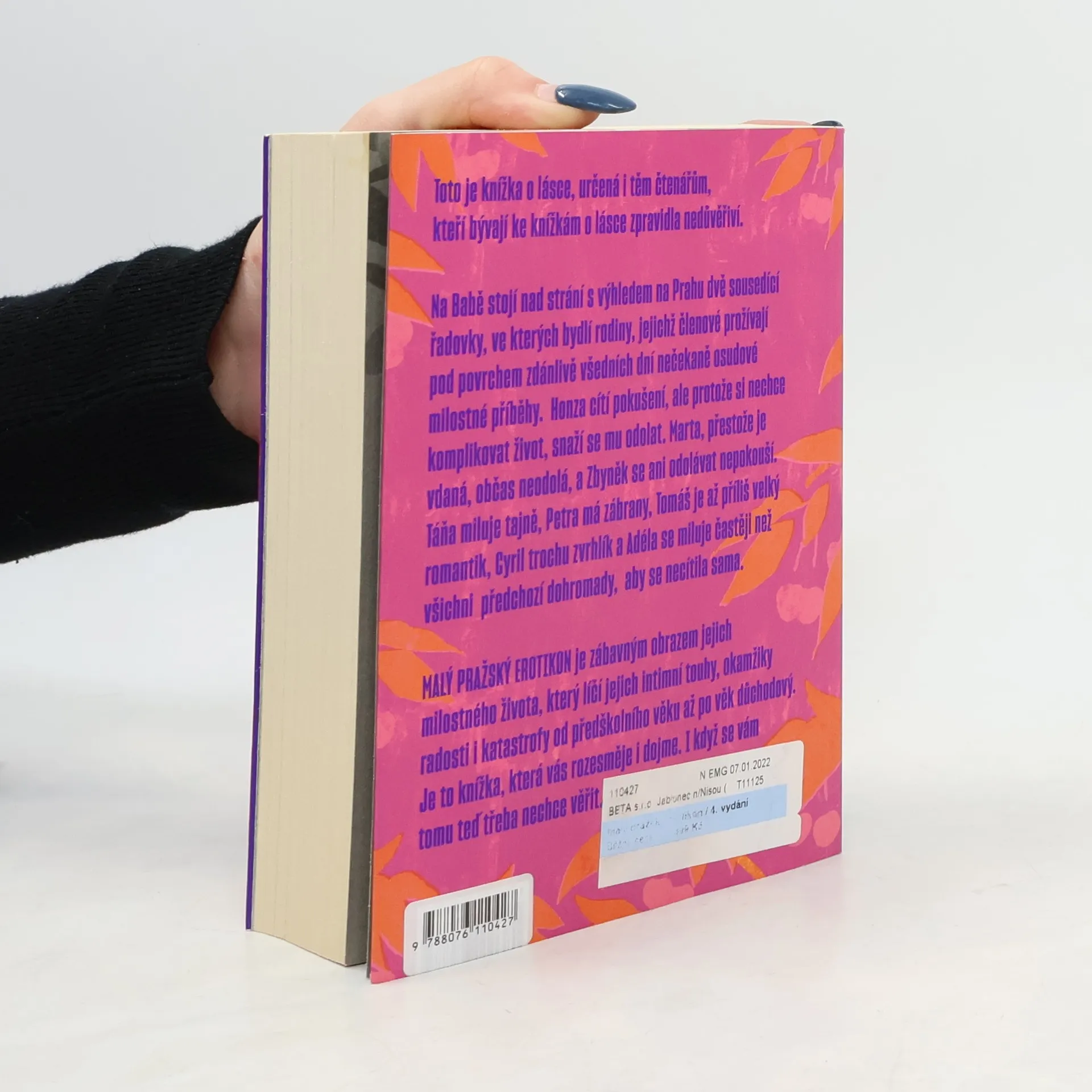 Román sledující životní příběh dvou sousedských párů z pražské čtvrti Baba v letech 1975-2005. Na Babě stojí nad strání s výhledem na Prahu dvě sousedící řadovky, ve kterých bydlí rodiny, jejichž členové prožívají pod povrchem zdánlivě všedních dní nečekaně osudové milostné příběhy. Honza cítí pokušení, ale protože si nechce komplikovat život, snaží se mu odolat. Marta, přestože je vdaná, občas neodolá, a Zbyněk se ani odolávat nepokouší. Táňa miluje tajně, Petra má zábrany, Tomáš je až příliš velký romantik, Cyril trochu zvrhlík a Adéla se miluje častěji, než všichni předchozí dohromady, aby se necítila sama. Malý pražský erotikon je zábavným obrazem jejich intimního života, který líčí jejich touhy, okamžiky radosti i katastrofy od předškolního věku až po věk důchodový. Nakladatelská anotace.