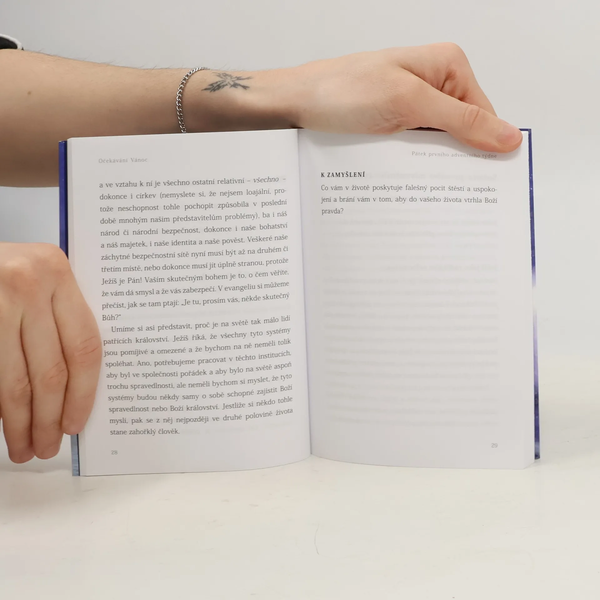 Kniha známého duchovního autora, františkána Richarda Rohra, nabízí zamyšlení pro každý den adventu. Vychází z liturgického čtení na daný den a dává čtenáři impulzy k tomu, aby dobu adventního očekávání strávil skutečnou vnitřní obnovou a posilou. Rohr se staví proti infantilizaci Vánoc a vybízí naopak k tomu, aby se staly opravdovými svátky křesťanské dospělosti. Dává podněty k objevení Boží lásky, velkorysosti, jeho touhy po lidské svobodě. V krátkých, ale moudrých promluvách nabízí na každý den adventu téma, které je možné celý den promýšlet. K tomu slouží i podněcující otázka v závěru, jež obrací pozornost na konkrétní život čtenáře.