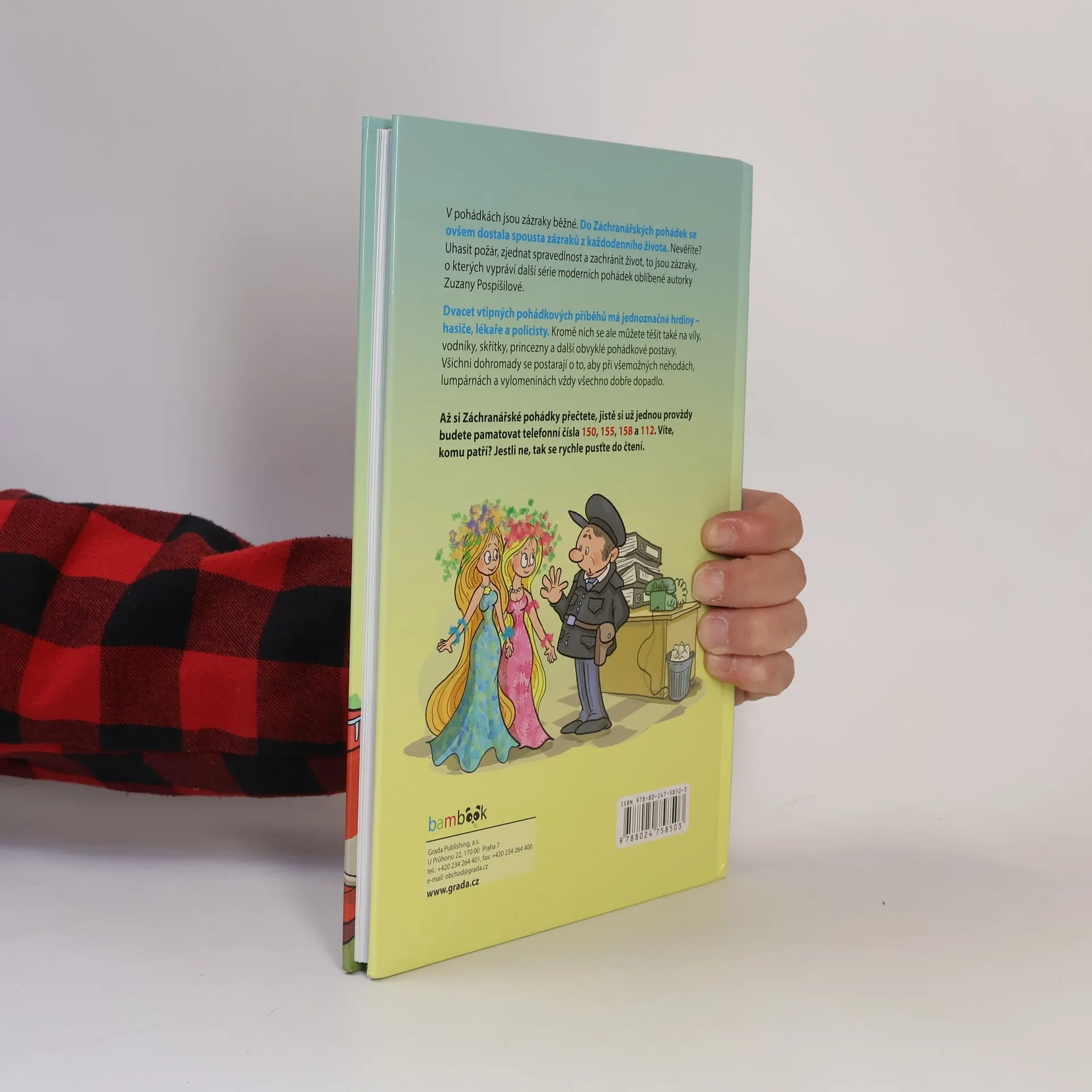 Dvacet vtipných pohádkových příběhů má jednoznačné hrdiny – hasiče, lékaře a policisty. Kromě nich se ale můžete těšit také na víly, vodníky, skřítky, princezny a další obvyklé pohádkové postavy. Všichni dohromady se postarají o to, aby při všemožných nehodách, lumpárnách a vylomeninách vždy všechno dobře dopadlo. Až si Záchranářské pohádky přečtete, jistě si už jednou provždy budete pamatovat telefonní čísla 150, 155, 158 a 112. Víte, komu patří? Jestli ne, tak se rychle pusťte do čtení.