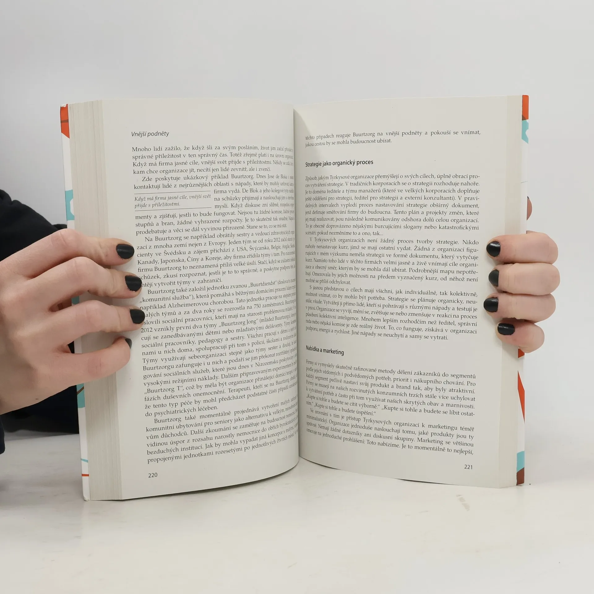 Kniha zásadně mění pohled na organizaci firem, ať už ziskových, neziskových nebo státních. Navazuje na předchozí tituly a přináší nový pohled na strukturu a fungování organizací. Frederic Laloux, jehož přednášky přitahují tisíce diváků, nabízí první podrobný manuál pro budování organizací v souladu se současným vědomím. Tyto organizace se zaměřují na sdílený smysl, hodnoty, vnitřní motivaci a sebeřízení místo tradiční hierarchie a kontroly. V knize se dozvíte o evoluci organizací, fungování dnešních hierarchických korporací a jak je přebudovat pro 21. století. Nabízí příklady firem pracujících na nových principech a přístupy k základním aspektům podnikání, jako je nábor, školení, týmová spolupráce a řízení výkonnosti. Důvody k zakoupení zahrnují srozumitelný popis evoluce organizací, praktický návod na transformaci firem, čtivý jazyk autora, který usnadňuje pochopení podnikatelského světa, a schopnost burcovat k změnám. Kniha také propojuje čtenáře s podobně smýšlejícími podnikateli, což posiluje komunitu kolem těchto myšlenek.