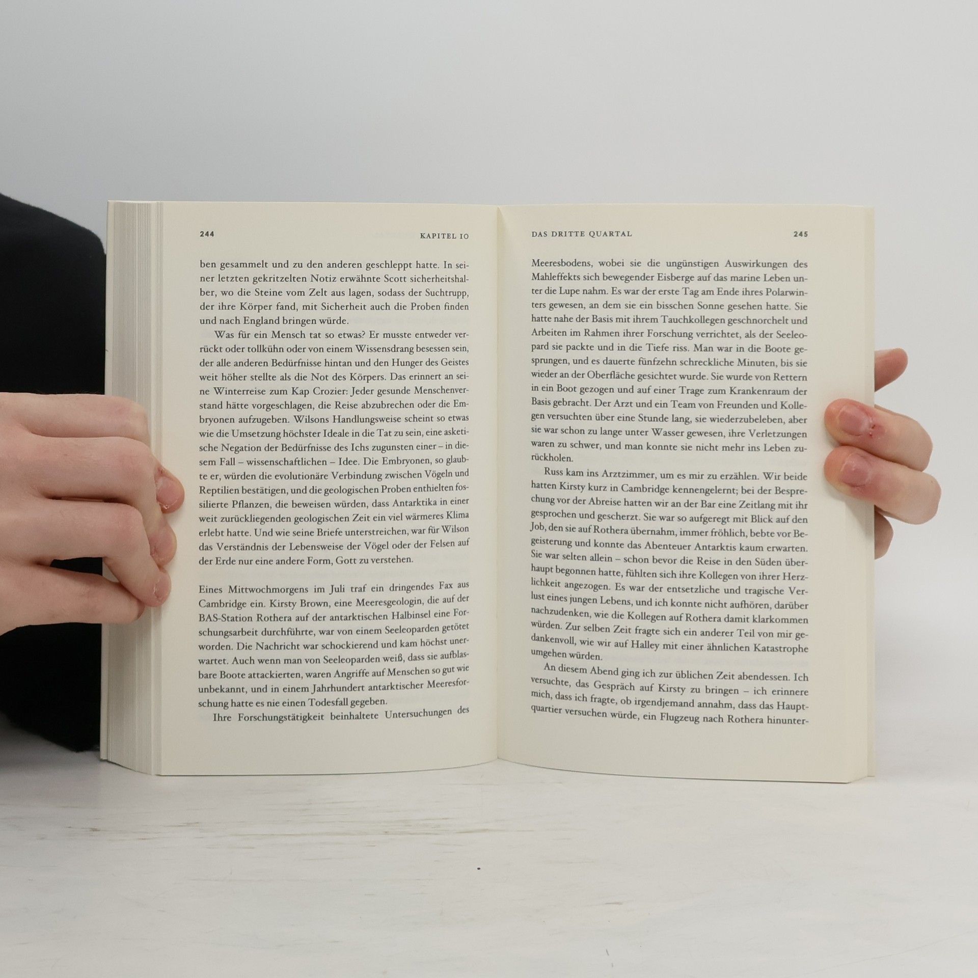 Ein Jahr auf Außenposten am Ende der Welt! Für Gavin Francis erfüllt sich ein Traum, als er die Arztstelle in einer britischen Forschungsstation in der Antarktis bekommt. Vor Ort erfährt er, dass Eis und Kälte, Einsamkeit und Dunkelheit depressiv machen können, doch versucht das kleine Team in Halley mit den Umständen zu leben und seine Aufgaben zu bewältigen. Dazu gehört das Sammeln von Klimadaten. Francis sucht, sooft er kann, die Nähe zu den Kaiserpinguinen. Die faszinierenden und wunderlichen Tiere verschaffen ihm ebenso Trost und Abwechslung wie die Literatur über berühmte Antarktis-Expeditionen. Das Buch ist die bewegende Erzählung über die Dienstzeit eines Arztes auf dem einsamsten Kontinent unseres Planeten. Es ist zugleich eine Liebeserklärung an einen schutzbedürftigen Teil der Erde, der durch die Klimaerwärmung bedroht ist.