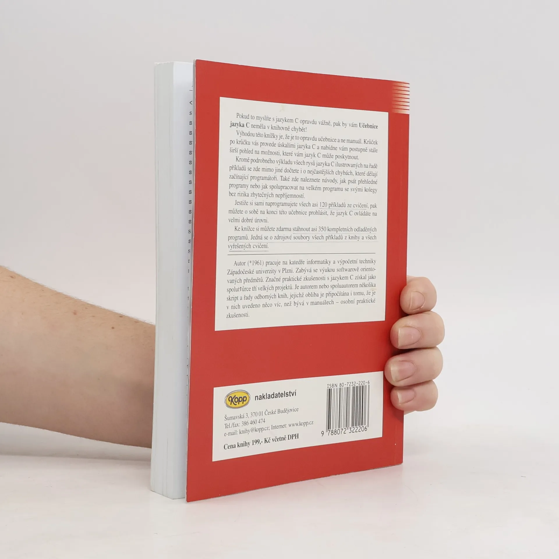4. vydání 1. dílu. Pokud to myslíte s jazykem C opravdu vážně, pak by vám Učebnice jazyka C neměla v knihovně chybět! Výhodou této knížky je, že je to opravdu učebnice a ne manuál. Krůček po krůčku vás provede úskalími jazyka C a nabídne vám postupně stále širší pohled na možnosti, které vám jazyk C může poskytnout. Kromě podrobného výkladu všech rysů jazyka C ilustrovaných na řadě příkladů se zde mimo jiné dočtete i o nejčastějších chybách, které dělají začínající programátoři. Také zde naleznete návody, jak psát přehledné programy nebo jak spolupracovat na velkém programu se svými kolegy bez rizika zbytečných nepříjemností. Jestiže si sami naprogramujete všech asi 120 příkladů ze cvičení, pak můžete o sobě na konci této učebnice prohlásit, že jazyk C ovládáte na velmi dobré úrovni. Ke knížce si můžete z přílohy zdarma stáhnout asi 350 kompletních odladěných programů. Jedná se o zdrojové soubory všech příkladů z knihy a všech vyřešených cvičení. Upozornění: Balík zdrojových souborů je společný i pro 2. díl Učebnice jazyka C (2. vydání). Tyto dvě knihy na sebe velmi úzce navazují!