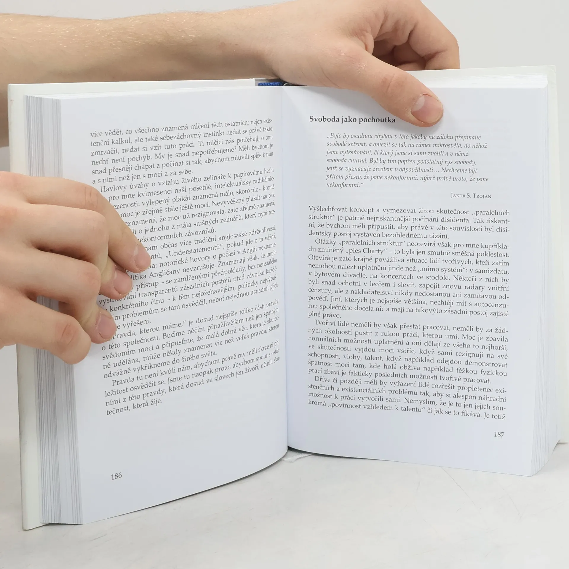 Kniha přibližuje skrze Pithartovy kratší texty třicetileté období šedesátých až osmdesátých let 20. století. Po ukázkách z mladistvých básnických pokusů shrnuje autorovu polemickou publicistiku v Literárních listech roku 1968, samizdatové texty a záznamy debat v disentu, stati v exilových periodikách i „zprávu o stavu společnosti“ z října 1989, která předpověděla to, co si poneseme z minulosti dál, po 17. listopadu.