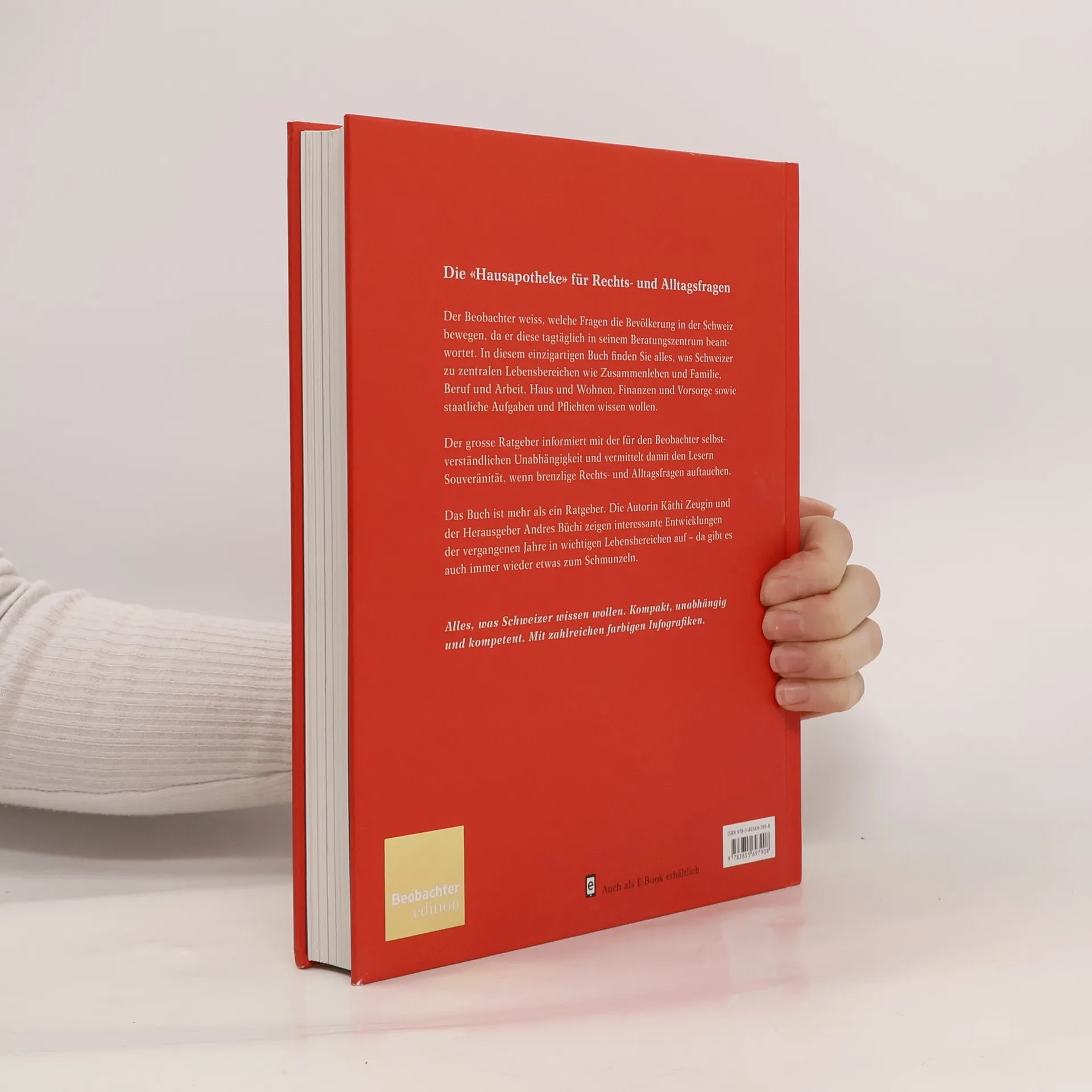 Rund 200 000 individuelle Anfragen beantworten die Beraterinnen und Berater des Beobachters jährlich. Auf dieser Beratungskompetenz beruhen seit 30 Jahren die erfolgreichen Beobachter-Ratgeber. Der Jubiläumsband bietet einen Querschnitt mit den wichtigsten Informationen und Tipps zu verschiedensten Lebensbereichen und leistet erste Hilfe bei rechtlichen und anderen Problemen im Alltag. Attraktive Infografiken, Porträts und lustige Episoden aus dem Beobachter-Beratungsalltag ergänzen den ratgeberischen Inhalt informativ und unterhaltend. - Arbeit ist das halbe Leben – die wichtigsten Antworten auf die meistgestellten Fragen - Zu zweit macht das Leben mehr Freude – Wissenswertes zum Thema Partnerschaft - Kinder verändern das Leben – die Rechte und Pfl ichten von Eltern kennen - Die eigenen vier Wände – was Mieter und Käufer wissen müssen - Vorsorge, Geld und soziale Sicherheit – ohne Geld läuft nichts - Konsum und Freizeit – was gute Angebote ausmacht - Der Staat und ich – was im Umgang mit Ämtern und Behörden gilt - Porträts und Episoden aus 30 Jahren Beobachter-Beratungspraxis