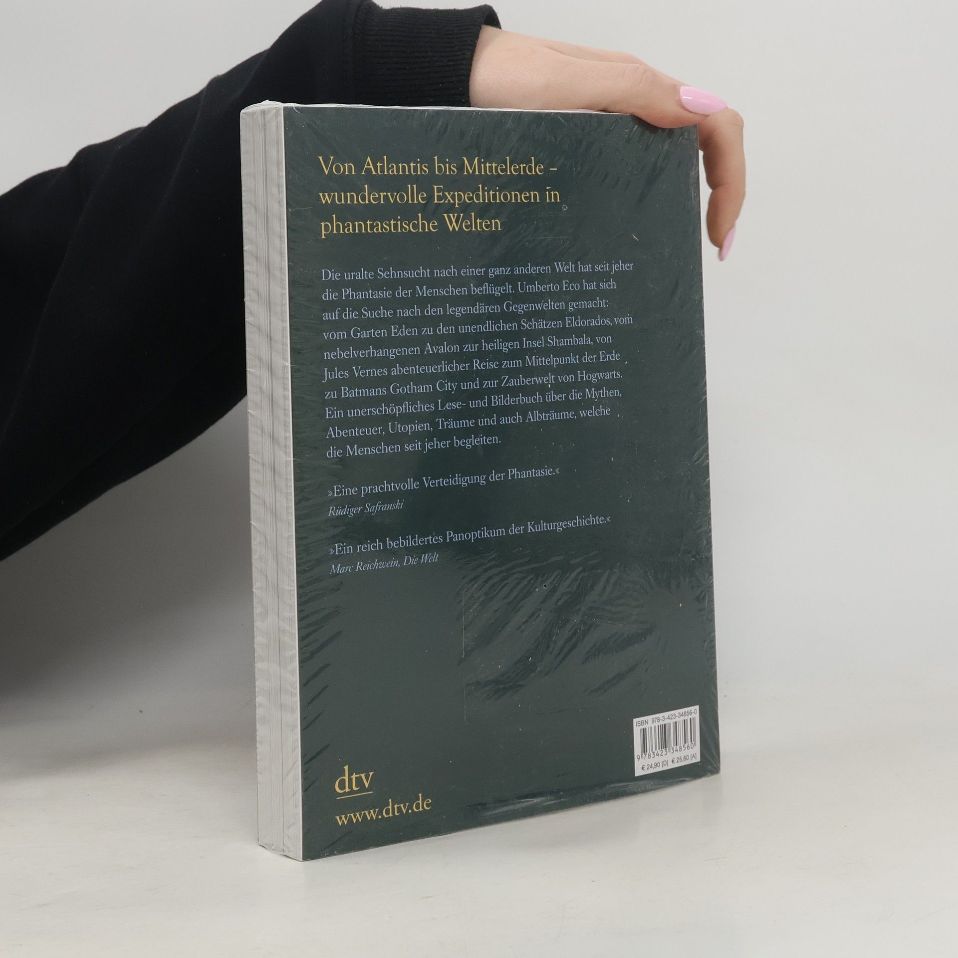 Von Atlantis nach Mittelerde. Von nichts haben die Menschen seit jeher so ausdauernd geträumt wie von fernen Kontinenten, unbekannten Ländern und funkelnden Städten – und wenn sie diese auf ihren Expeditionen nicht entdecken konnten, haben sie sie erfunden. Umberto Eco hat sich auf die Reise zu den sagenhaften Gegenwelten gemacht: von der versunkenen Stadt Atlantis zu Gullivers Riesen und Zwergen, von Homers Troja zu Marco Polos China, von den Orten der Bibel bis zu Tolkiens Mittelerde.
