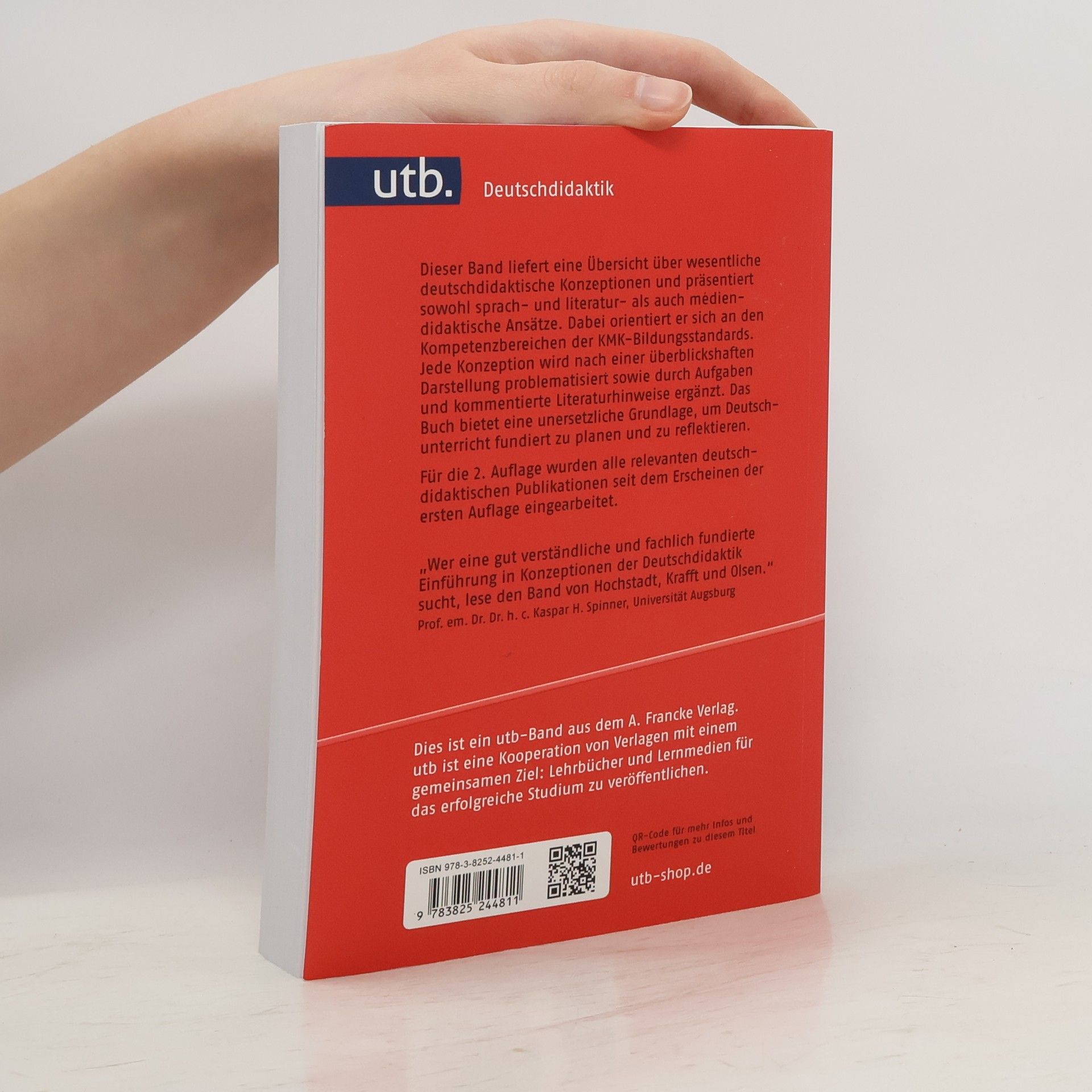 Alle deutschdidaktischen Konzeptionen auf einen Blick Dieser Band präsentiert für Studierende, Lehramtsanwärter und -anwärterinnen sowie Lehrkräfte an Schulen und Hochschulen alle wesentlichen sprach- und literatur- als auch mediendidaktischen Konzepte der Deutschdidaktik an einem Ort. Dabei orientiert sich das Buch an den Kompetenzbereichen der KMK-Bildungsstandards. Jede Konzeption wird nach einer überblickshaften Darstellung problematisiert sowie durch Aufgaben und kommentierte Literaturhinweise ergänzt. Das Buch bietet somit eine unersetzliche Grundlage, um Deutschunterricht fundiert zu planen und zu reflektieren. Für die 2. Auflage wurden alle relevanten Publikationen, die seit dem Erscheinen der ersten Auflage veröffentlicht wurden, herangezogen und eingearbeitet, um den Leser auf den neuesten Stand der Deutschdidaktik zu bringen.