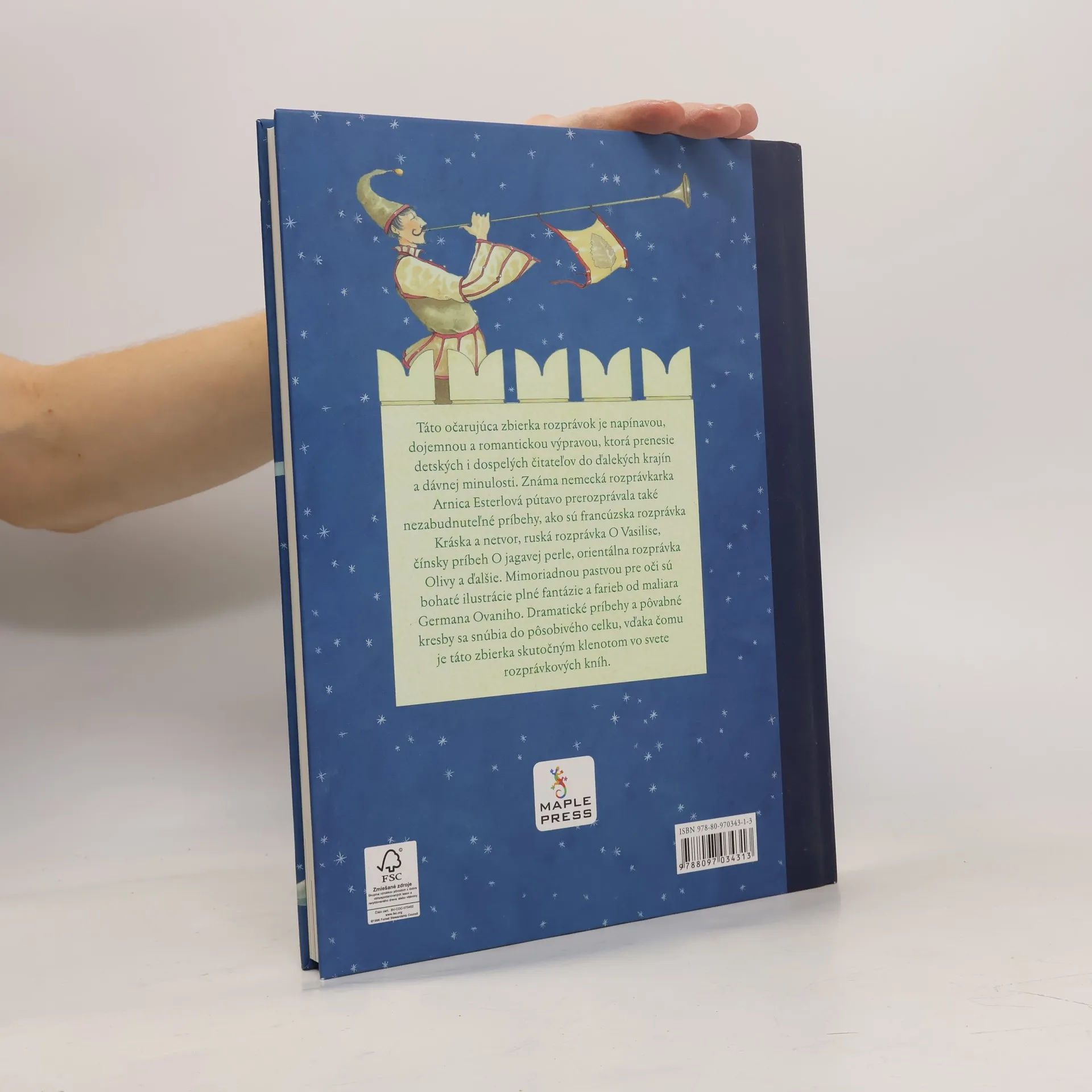 Táto očarujúca zbierka rozprávok je napínavou, dojemnou a romantickou výpravou, ktorá prenesie detských i dospelých čitateľov do ďalekých krajín a dávnej minulosti. Známa nemecká rozprávkarka Arnica Esterlová pútavo prerozprávala také nezabudnuteľné príbehy, ako sú francúzska rozprávka Kráska a netvor, ruská rozprávka O Vasilise, čínsky príbeh O žiariacej perle, orientálna rozprávka Olivy a ďalšie. Mimoriadnou pastvou pre oči sú bohaté ilustrácie plné fantázie a farieb od maliara Germana Ovaniho. Dramatické príbehy a pôvabné kresby sa snúbia do pôsobivého celku, vďaka čomu je táto zbierka skutočným klenotom vo svete rozprávkových kníh.