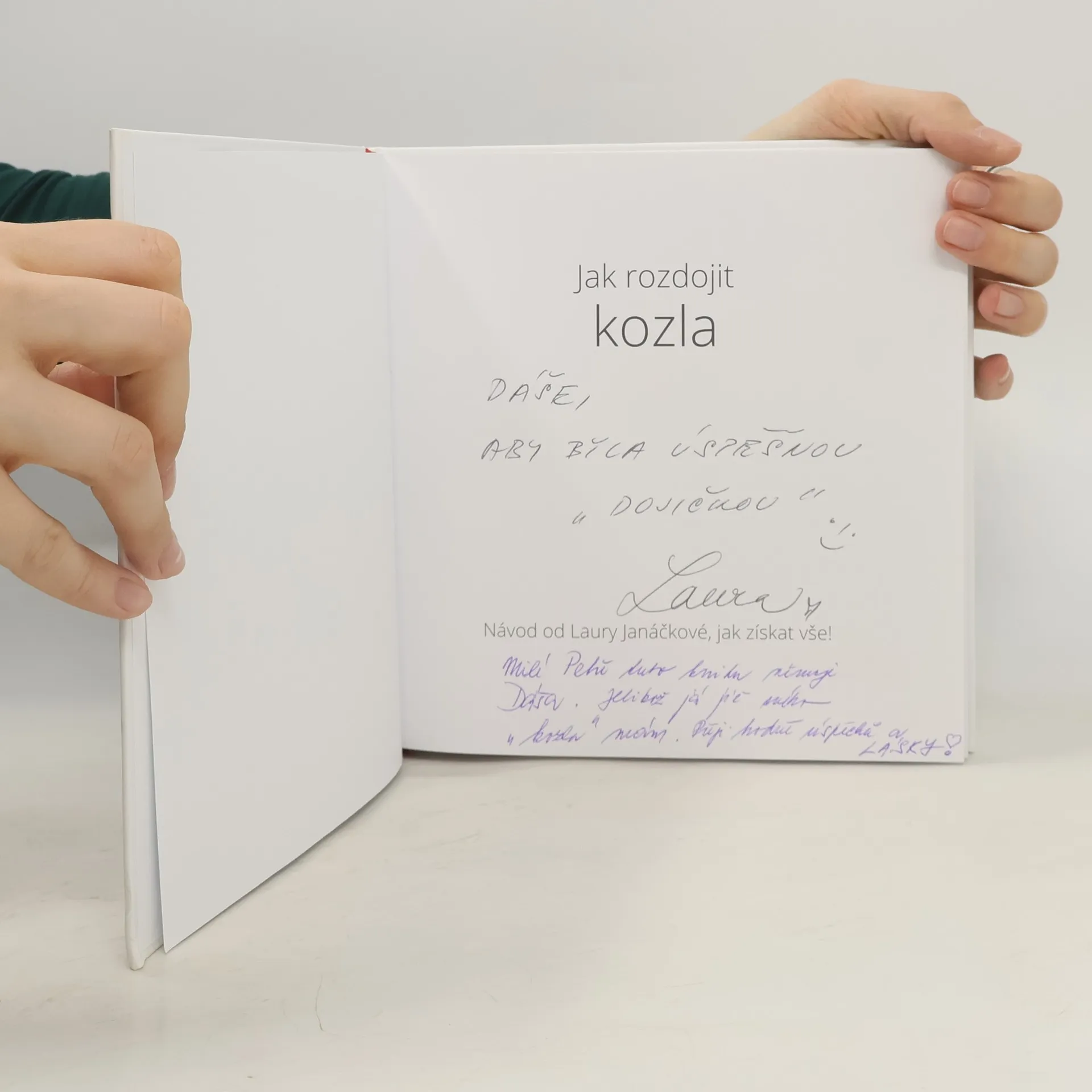 Návod od Laury Janáčkové, jak získat vše! Kniha „ Jak rozdojit kozla „ je praktickým návodem, jak získat od mužů vše, po čem žena touží. Ať už se jedná o lásku, porozumění , ale i obdiv nebo dárečky , kterými jí muž projevuje svůj vztah. V knize je uvedeno plno osobních příběhů, převážně movitých mužů a krásných žen , které ukazují jakými cestami může vztah vznikat a na jakých principech funguje. Vysvětluje rozdílné myšlení , chování a jednání obou pohlaví a zábavnou formou odkazuje na analogie z říše zvířat.