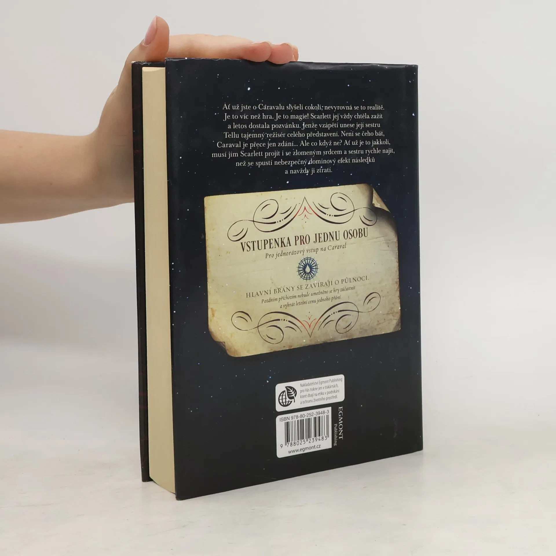 Než vstoupíte do světa Caravalu, mějte na paměti, že je to jen hra. Ať už jste o Caravalu slyšeli cokoli, určitě se to nevyrovná realitě. Je to víc než hra! Je to magie. Scarlett vždy toužila Caraval zažít a letos dostala pozvánku. Jenže vzápětí unese její sestru Tellu tajemný režisér celého představení. Není se čeho bát, Caraval je přece jen zdání. Ale co když ne? Ať už je to jakkoli, Caravalem musí Scarlett projít i se zlomeným srdcem a sestru rychle najít, než se spustí nebezpečný dominový efekt následků a navždy ji ztratí.