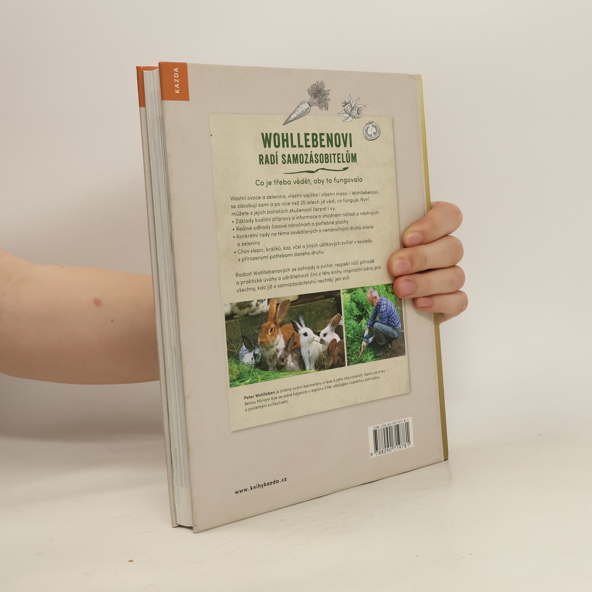 Wohllebenovi v této knize radí samozásobitelům co je třeba vědět, aby to fungovalo. Vlastní ovoce a zelenina, vlastní vajíčka i vlastní maso – Wohllebenovi se zásobují sami a po více než 25 letech již vědí, co funguje. Nyní můžete z jejich bohatých zkušeností čerpat i vy. - Základ kvalitní přípravy a informace o vhodném nářadí a nástrojích - Reálné odhady časové náročnosti a potřebné plochy - Konkrétní rady na téma osvědčených a nenáročných druhů ovoce a zeleniny - Chov slepic, králíků, koz, včel a jiných užitkových zvířat v souladu s přirozenými potřebami daného druhu Radost Wohllebenových ze zahrady a zvířat, respekt vůči přírodě a praktické úvahy o udržitelnosti činí z této knihy inspirační zdroj pro všechny, kdo již o samozásobitelství nechtějí jen snít.