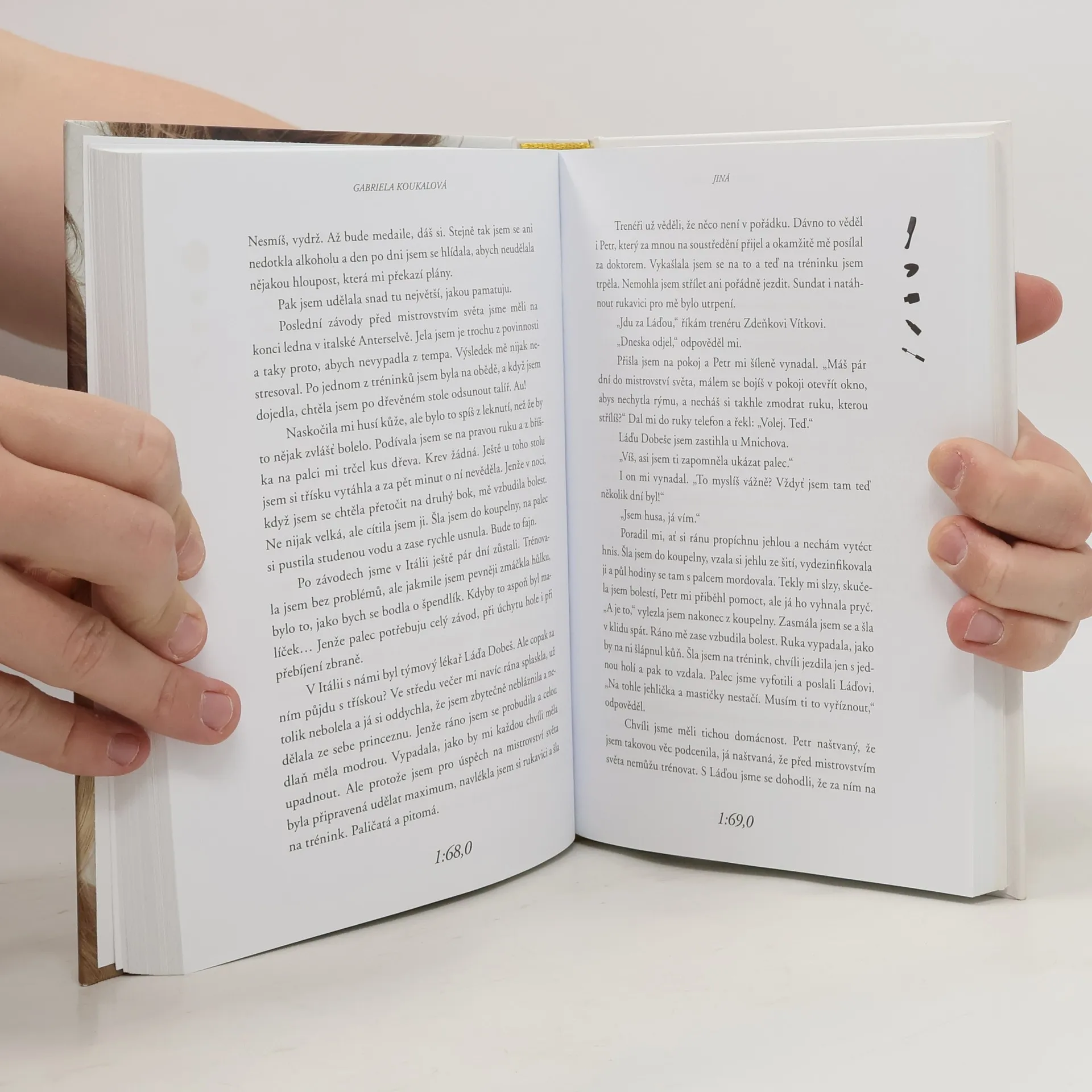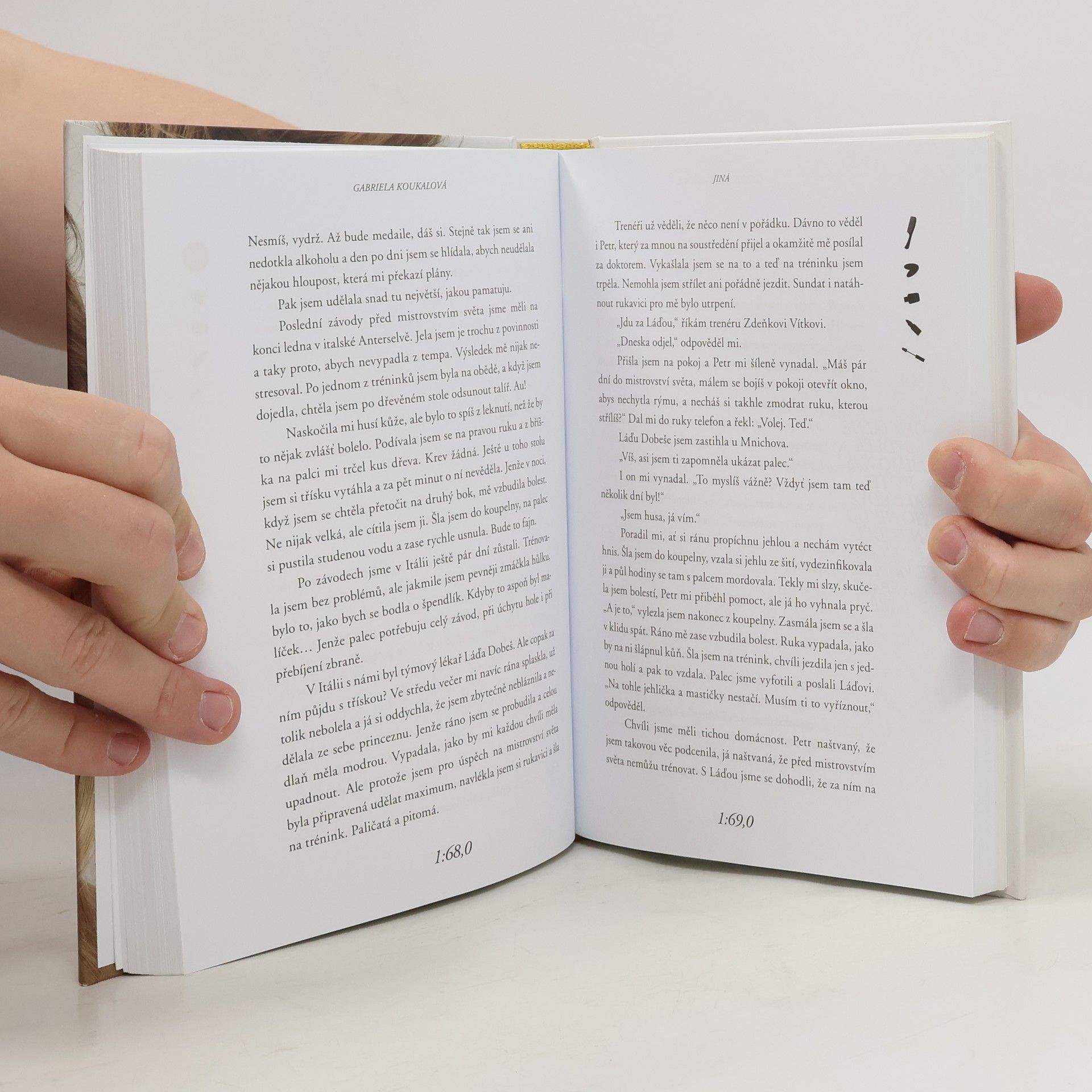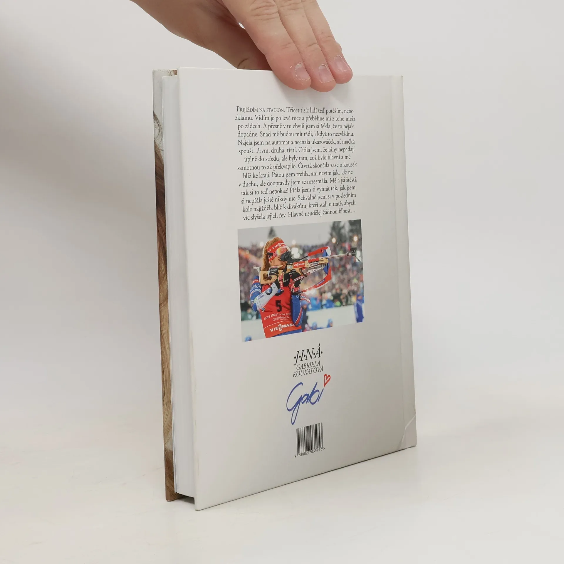Zažila slávu, úspěchy, medaile. Ale taky spoustu okamžiků, o kterých dosud nikomu neřekla. O některých proto, že se bála, o dalších proto, že se styděla. Teď je Gabriela Koukalová poprvé odhaluje ve své biografii. Vychází sportovní i osobní zpověď nejlepší biatlonistky naší historie. Mistryně světa, olympijské medailistky, vítězky Světového poháru. Kniha je psaná autenticky v první osobě a odhaluje zákulisí tréninkové dřiny, nejdůležitějších závodů i mysli vrcholové sportovkyně v těch nejvypjatějších momentech. Gabriela jde ve svých pocitech na dřeň. Popisuje nejen velké výhry, ale i to, co se skrývá za nimi. Třeba desítky probrečených nocí, spory s rodiči a trenéry, ne vždy ideální atmosféra v týmu nebo těžká nemoc, kterou před světem dlouho tajila… Součástí knihy jsou i dosud nezveřejněné fotografie.