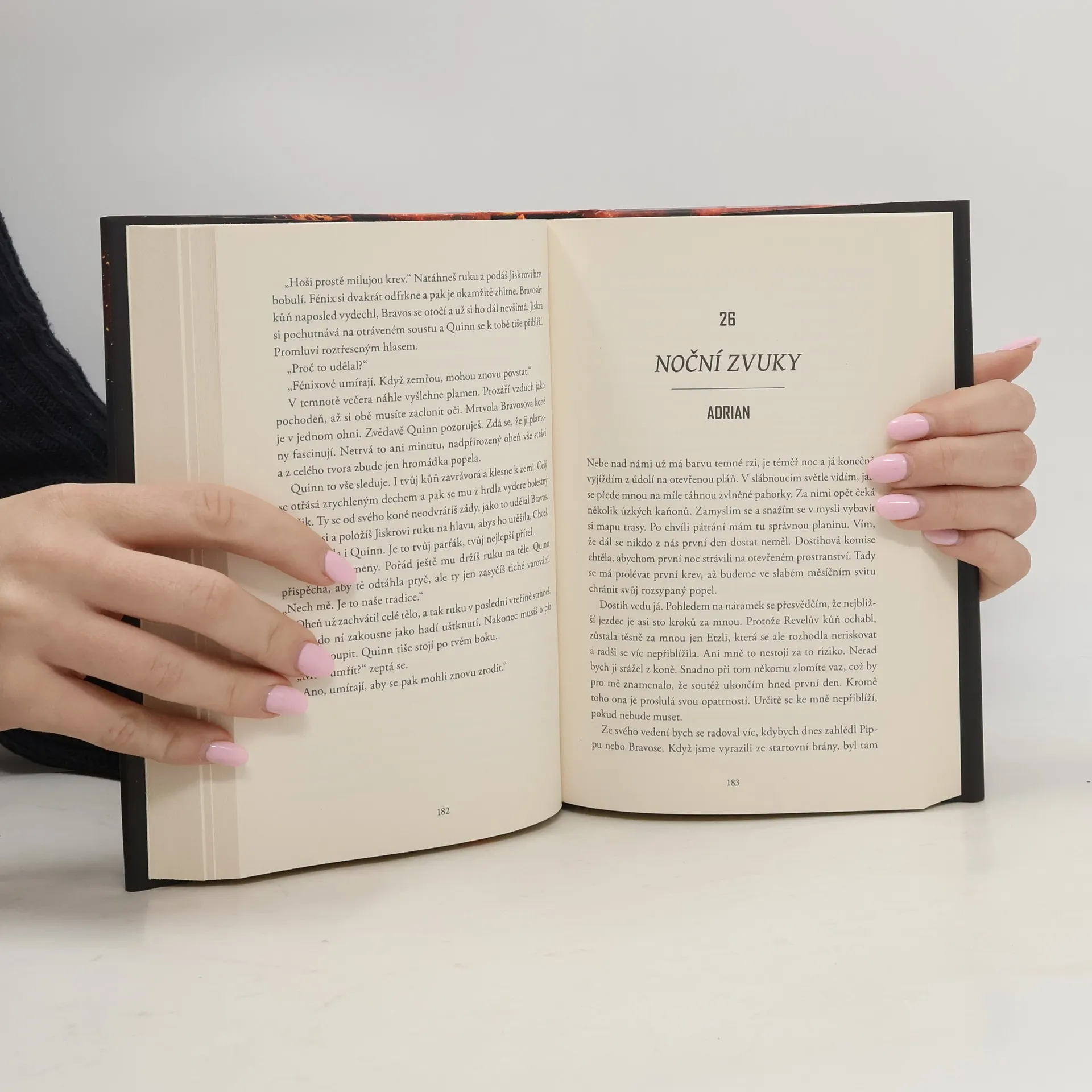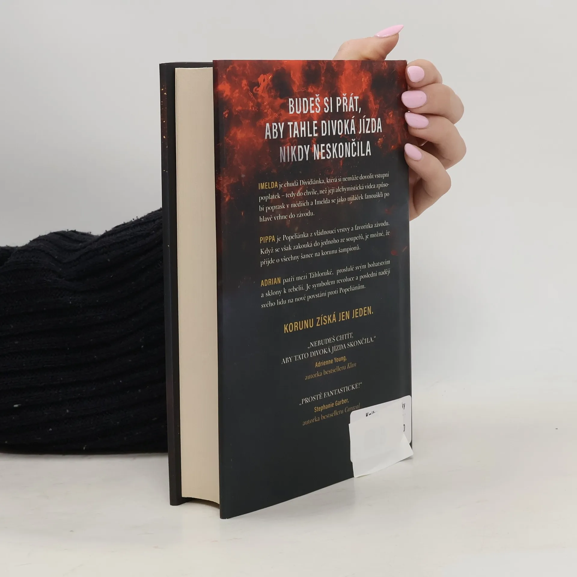 Už odedávna, kdy Popeliáni dostali od svých božstev fénixy, na nich jezdí do bitev, na lov a zejména na proslulém Dostihu. Elitní jezdci ze znepřátelených kultur touží po vítězství, a tak pilují dávné umění vytvářet a ovládat fénixy – koně, kteří se za pomoci alchymie rodí z popela. Každé ráno znovu povstávají, aby večer opět shořeli v ničivých plamenech. Dobrá alchymie ovšem není k ničemu, pokud jezdec nepřežije brutální noční souboje. Vražda je sice nezákonná, ale lámat kosti a otrávit popel je legální – publikum to dokonce vyžaduje. V letošním závodě soutěží jedenáct jezdců, ale tři z nich riskují víc než ostatní – dcera dvou bývalých šampionů, nadějná stipendistka a syn revolucionáře. Kterému z nich se podaří splnit si svůj velký sen o slávě a získat moc ve prospěch svého lidu? Anebo všichni shoří v drtivé porážce? VÍTĚZEM SE ČLOVĚK NERODÍ, VÍTĚZEM SE MUSÍ STÁT. IMELDA je chudá Dividiánka, která si nemůže dovolit vstupní poplatek – tedy do chvíle, než její alchymistická videa způsobí poprask v médiích a Imelda se jako miláček fanoušků po hlavě vrhne do závodu. PIPPA je Popeliánka z vládnoucí vrstvy a favoritka závodu. Když se však zakouká do jednoho ze soupeřů, je možné, že přijde o všechny šance na korunu šampionů. ADRIAN patří mezi Táhloruké, známé svým bohatstvím, ale také zmařenými povstáními. Je symbolem revoluce a poslední nadějí svého lidu na nové povstání proti Popeliánům. KORUNU ZÍSKÁ JEN JEDEN.
