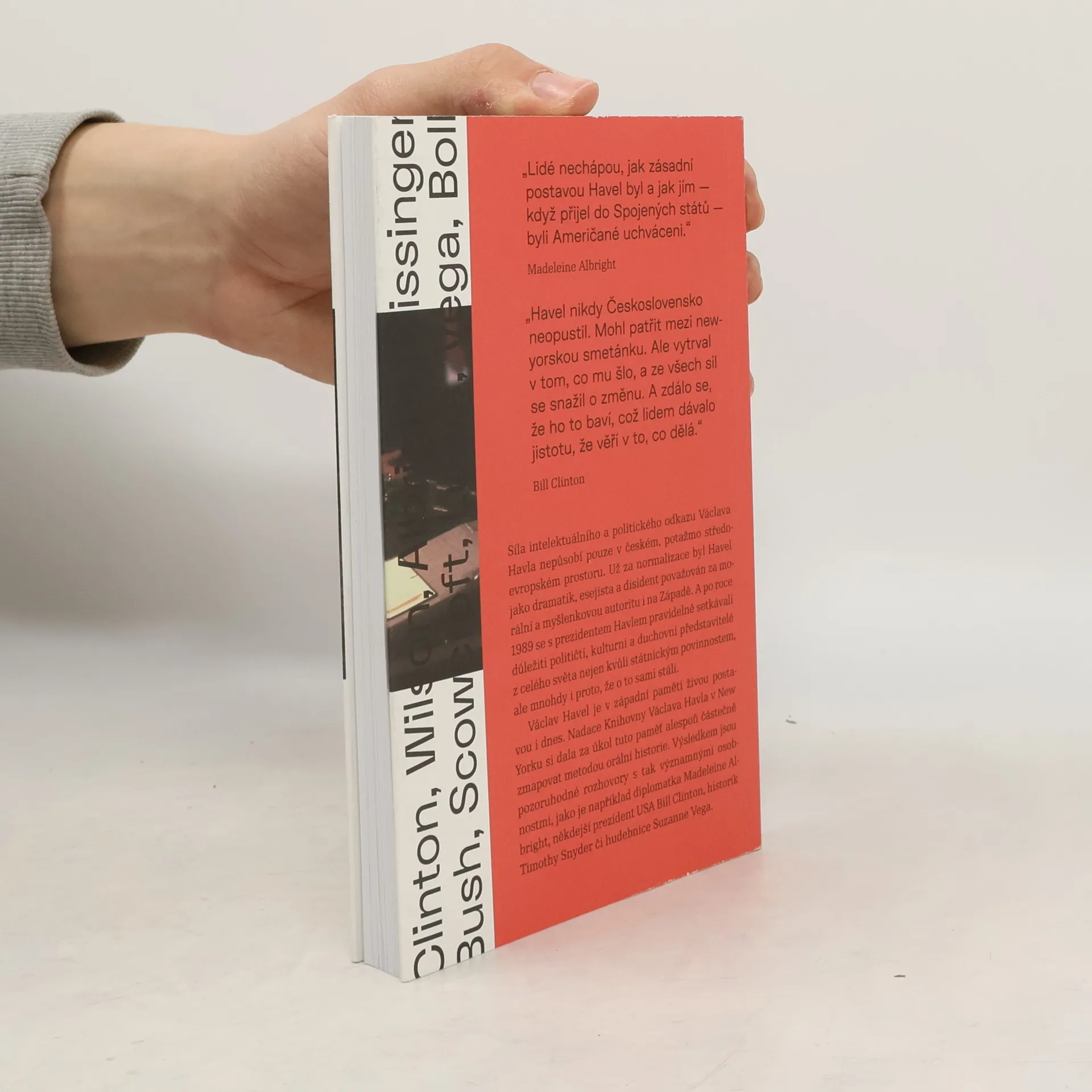 Síla intelektuálního a politického odkazu Václava Havla nepůsobí pouze v českém, potažmo středoevropském prostoru. Jako dramatik, esejista a disident byl Havel považován za morální a myšlenkovou autoritu už za normalizace i na Západě. A po roce 1989 se s prezidentem Havlem pravidelně setkávali přední političtí, kulturní a duchovní představitelé z celého světa nejen kvůli státním povinnostem, ale i proto, že o to mnohdy sami stáli. Václav Havel je v západní paměti živou postavou i dnes. Václav Havel Foundation Library v New Yorku si dala za úkol tuto paměť alespoň částečně zmapovat metodou orální historie. Výsledkem jsou pozoruhodné rozhovory s osobnostmi formátu diplomatky Madeleine Albrightové, někdejšího prezidenta USA Billa Clintona, historika Timothyho Snydera či hudebnice Suzanne Vega.
