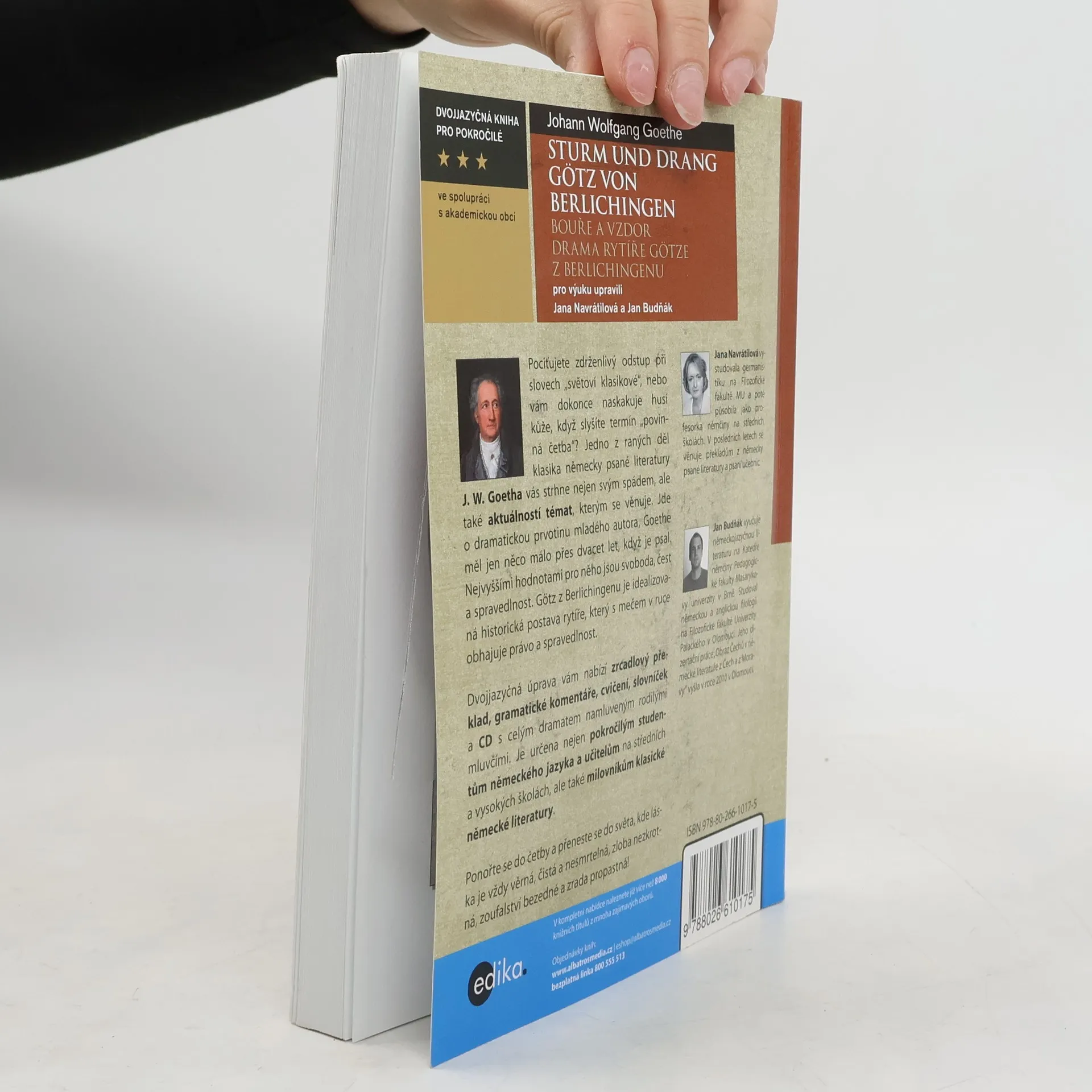 Goetheho dramatická prvotina upravená a zjednodušená pro výuku německého jazyka. Drama, které vám v této knize nabízíme, vzniklo v době, která se v německé literatuře příznačně nazývá Sturm und Drang – období bouře a vzdoru. Hlavní důraz se klade na hluboce prožívané city, vášně, hrdinové se pohybují neustále v extrémních situacích a pohříchu většinou končí tragicky. Goethe měl jen něco málo přes dvacet let, když je psal. Vytvořil dílo plné vášně a touhy po svobodě. Nejvyššími hodnotami pro něho jsou svoboda, čest a spravedlnost. Götz z Berlichingenu je idealizovaná historická postava rytíře, který s mečem v ruce obhajuje právo a spravedlnost a nakonec hluboce rozčarován lidskou falší umírá. Při četbě vám pomůže česko-německý zrcadlový text. Na konci knihy najdete slovníček a cvičení vhodná před četbou, během četby i po četbě. Součástí je i audioverze na CD.