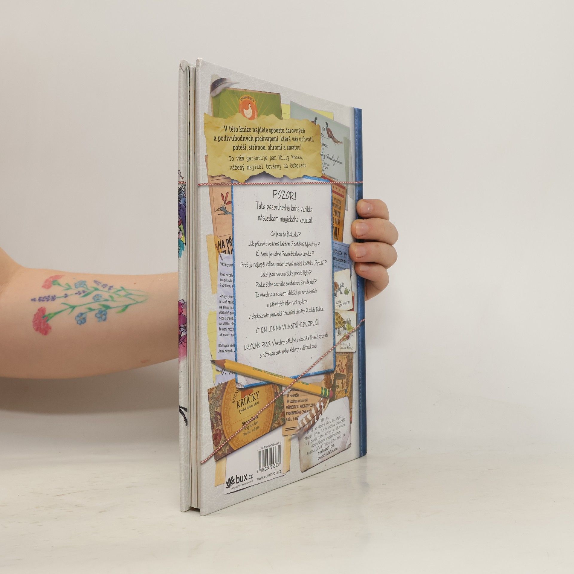 Průvodce úžasnými příběhy mistra vypravěče, tvůrce roztodivných postaviček, fantastických bytostí, příšer a příšerek je určena pro všechny dětské a dospělé lidské bytosti s dětskou duší nebo sklony k dětinskosti. Tato pozoruhodná kniha vznikla následkem magického kouzla a její čtení je jen na vlastní nebezpečí! Co jsou to fňokurky? Jak připravit obávaný lektvar Zpožděný myšotvor? K čemu je dobré Pevnědrželovo lepidlo? Proč je nejlepší volbou patentovaný model kočárku „Pytlák“? Jaké jsou doopravdické prevítí fígly? Podle čeho poznáte skutečnou čarodějnici? To všechno a spoustu dalších pozoruhodných a zábavných informací najdete v obrázkovém průvodci příběhy Roalda Dahla.