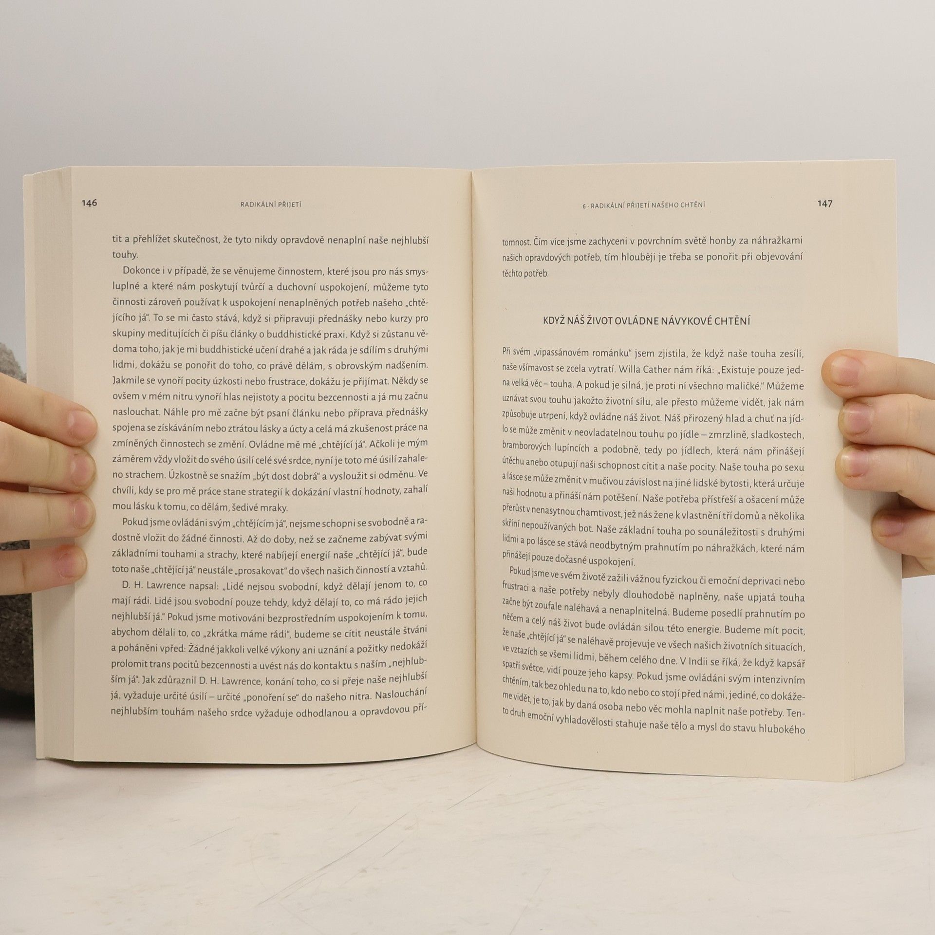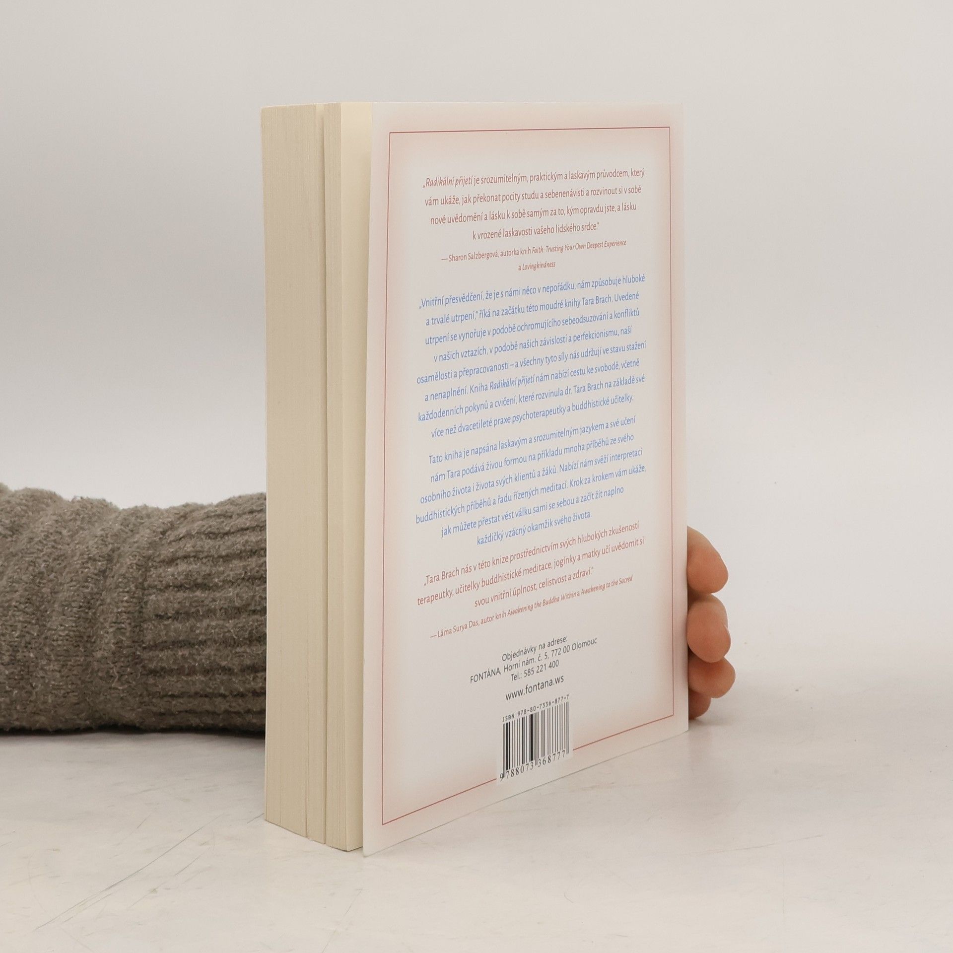 „Radikální přijetí je srozumitelným, praktickým a laskavým průvodcem, který vám ukáže, jak překonat pocity studu a sebenenávisti a rozvinout si v sobě nové uvědomění a lásku k sobě samým za to, kým opravdu jste, a lásku k vrozené laskavosti vašeho lidského srdce.“ — Sharon Salzbergová Tara Brach na začátku této moudré knihy poukazuje na to, že vnitřní přesvědčení o naší nedostatečnosti způsobuje hluboké a trvalé utrpení. Toto utrpení se projevuje v sebeodsuzování, konfliktech ve vztazích, závislostech, perfekcionismu, osamělosti a přepracovanosti, což nás udržuje ve stavu stažení a nenaplnění. Kniha nabízí cestu ke svobodě, včetně každodenních pokynů a cvičení, které Tara Brach vyvinula na základě své více než dvacetileté praxe psychoterapeutky a buddhistické učitelky. Tara používá laskavý a srozumitelný jazyk a ilustruje své učení příběhy ze svého života i života svých klientů a žáků. Nabízí svěží interpretaci buddhistických příběhů a řadu řízených meditací. Krok za krokem ukazuje, jak přestat vést válku sami se sebou a začít žít naplno každý vzácný okamžik. „Tara Brach nás v této knize prostřednictvím svých hlubokých zkušeností učí uvědomit si svou vnitřní úplnost, celistvost a zdraví.“ — Láma Surya Das