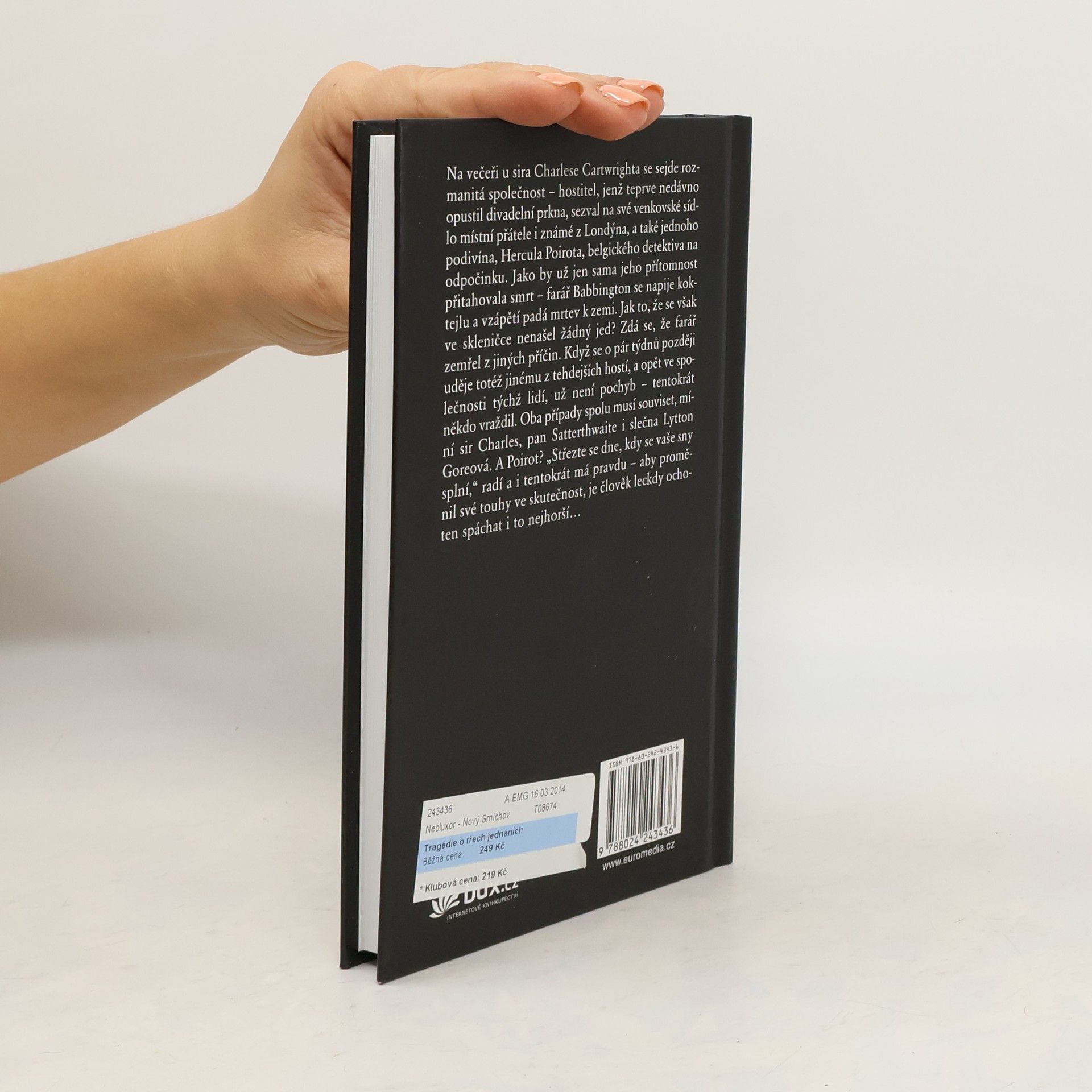 Na večeři u sira Charlese Cartwrighta se sejde rozmanitá společnost – včetně nenápadného pana Satterthwaita a podivínského Hercula Poirota, belgického detektiva na odpočinku. Jeden z pozvaných, farář Babbington, se napije koktejlu a vzápětí padá mrtev k zemi – ve sklence se nenašly stopy jedu, smrt tedy musela nastat z jiných příčin. Když o pár týdnů později umírá jiný z tehdejších hostí, a opět ve společnosti týchž lidí, už není pochyb – někdo vraždil nikotinem. „Střezte se dne, kdy se vaše sny splní,“ radí Poirot a i tentokrát má pravdu – aby proměnil své touhy ve skutečnost, je člověk leckdy ochoten dopustit se i toho nejhoršího…