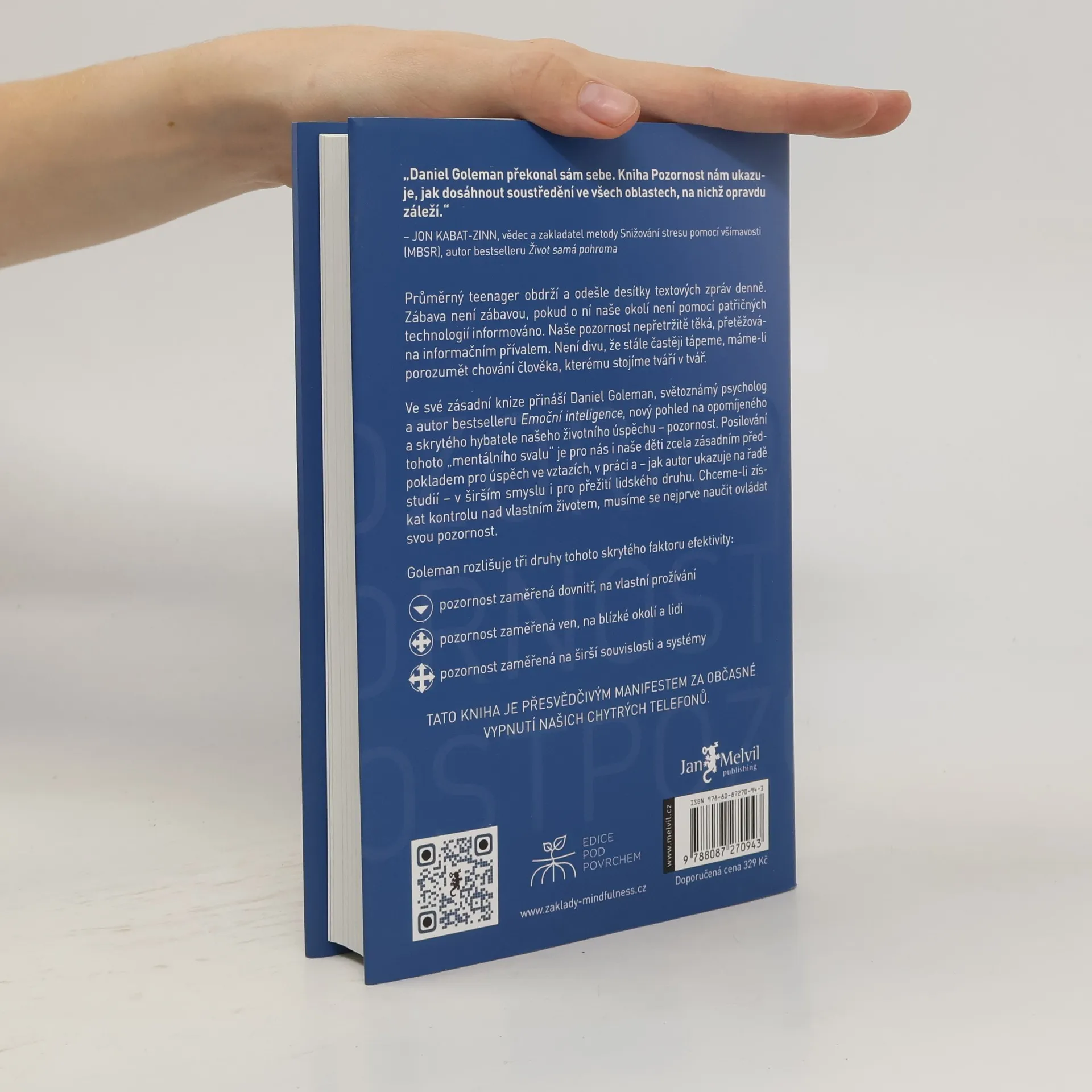 Kniha Pozornost – Skrytá cesta k dokonalosti je o životě v éře neustálého vyrušování, o klíčovém vlivu soustředění na náš úspěch i pocit štěstí a také o hledání nástrojů, jak zvýšit soustředění uprostřed vřavy moderního života. Díky jedinečnému vhledu a erudici přináší Daniel Goleman pozoruhodné, zásadní, čtivé, byť ne vždy radostné čtení a provází čtenáře objevnou cestou, jejímž cílem je znovuovládnutí naší pozornosti. Tato knížka nemusí, ale může změnit váš život. Pokud se jí to podaří, změní skrze vás celý svět.