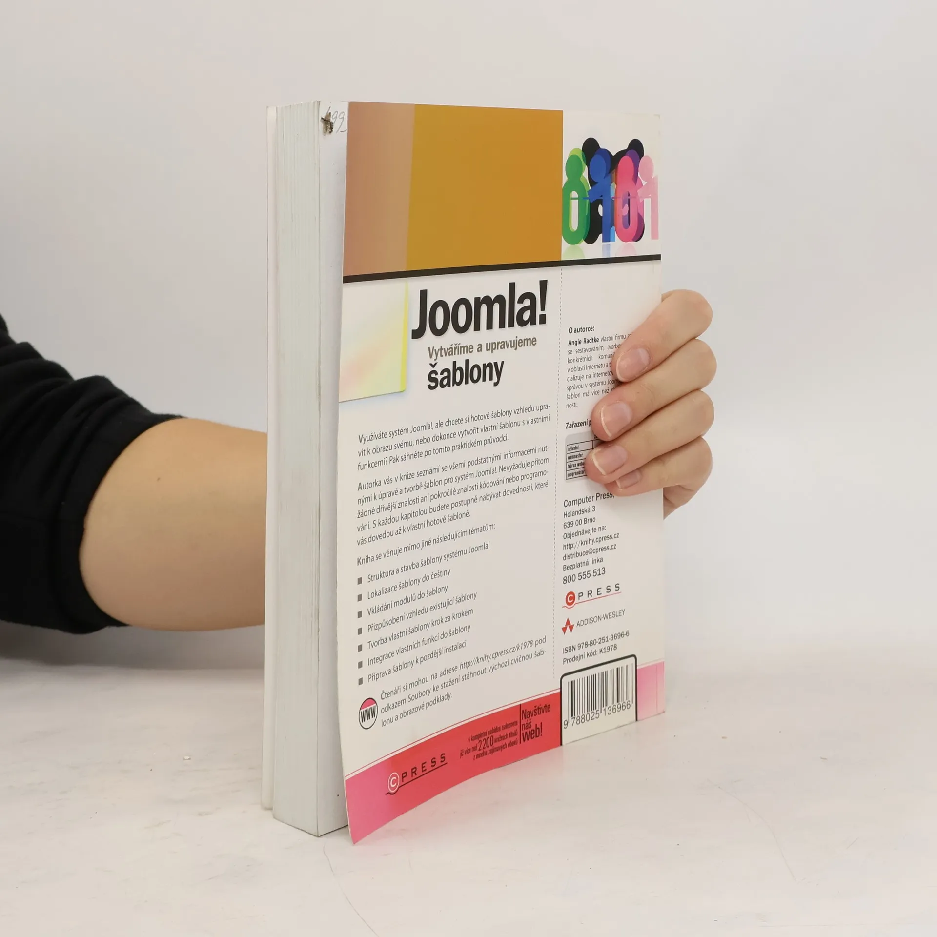 Využíváte systém Joomla!, ale chcete si hotové šablony vzhledu upravit k obrazu svému, nebo šablony vlastní? Autorka vás v knize seznámí se všemi podstatnými informacemi nutnými k úpravě a tvorbě šablon pro systém Joomla!. Nevyžaduje přitom žádné dřívější znalosti, ani pokročilé znalosti kódování nebo programování. S každou kapitolou budete postupně nabývat dovednosti, které vás dovedou až k vlastní hotové šabloně.