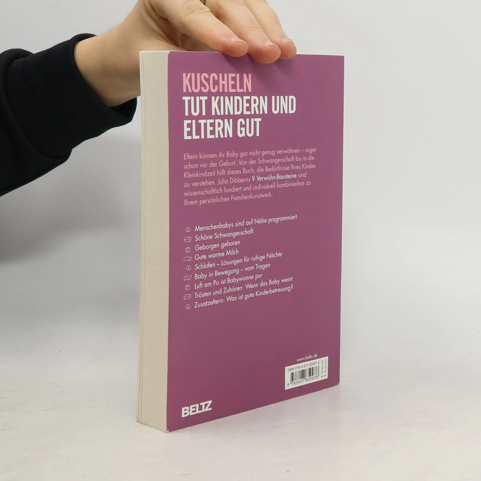 Junge Eltern wünschen sich nichts sehnlicher als Nähe und Zärtlichkeit mit ihrem Baby. Aber viele sind verunsichert, denn die Angst vor dem Verwöhnen ist weit verbreitet. Wie reagiert man am besten auf die Bedürfnisse des Kindes? Anhand neuester Erkenntnisse aus Epigenetik und Evolutionsbiologie zeigt Julia Dibbern, dass Eltern ihr Baby gar nicht genug verwöhnen können. Eltern erhalten kompakte Informationen zur frühkindlichen Entwicklung, die ihnen helfen, ihre eigene Form des Verwöhnens zu finden. Dibberns neun »Verwöhn-Bausteine« sind erprobt, wissenschaftlich fundiert und individuell umsetzbar.