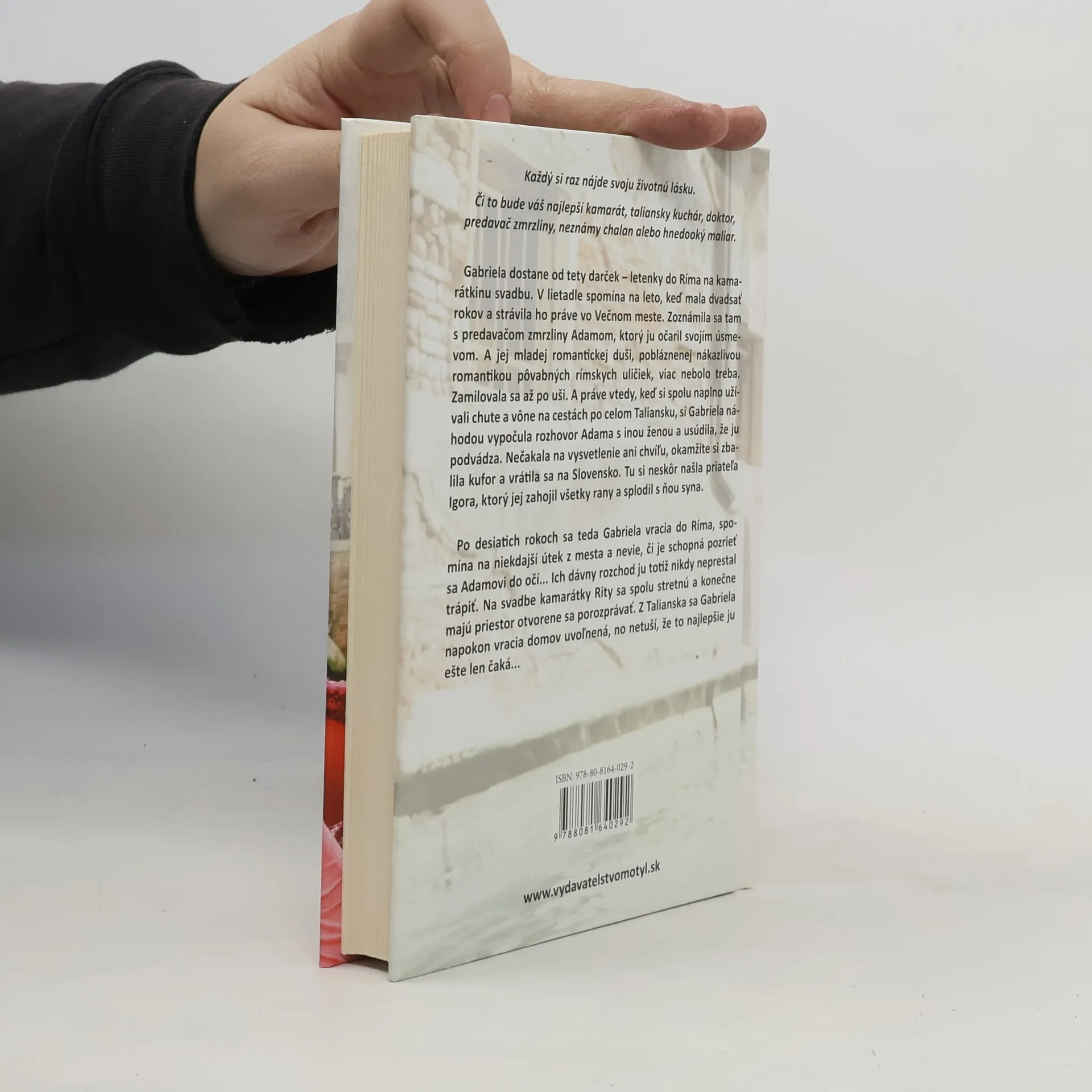 Každý si raz nájde svoju životnú lásku. Či to bude váš najlepší kamarát, taliansky kuchár, doktor, predavač zmrzliny, neznámy chalan alebo hnedooký maliar. Každý si ju raz nájde... Gabriela dostane od tety darček – letenky do Ríma na kamarátkinu svadbu. V lietadle spomína na leto, keď mala dvadsať rokov a strávila ho práve vo Večnom meste. Zoznámila sa tam s predavačom zmrzliny Adamom, ktorý ju očaril svojím úsmevom. A jej mladej romantickej duši, pobláznenej nákazlivou romantikou pôvabných rímskych uličiek, viac nebolo treba. Zamilovala sa až po uši. A práve vtedy, keď si spolu naplno užívali chute a vône na cestách po celom Taliansku, si Gabriela náhodou vypočula rozhovor Adama s inou ženou a usúdila, že ju podvádza. Nečakala na vysvetlenie ani chvíľu, okamžite si zbalila kufor a vrátila sa na Slovensko. Tu si neskôr našla priateľa Igora, ktorý jej zahojil všetky rany a splodil s ňou syna. Po desiatich rokoch sa teda Gabriela vracia do Ríma, spomína na niekdajší útek z mesta a nevie, či je schopná pozrieť sa Adamovi do očí... Ich dávny rozchod ju totiž nikdy neprestal trápiť. Na svadbe kamarátky Rity sa spolu stretnú a konečne majú priestor otvorene sa porozprávať. Z Talianska sa Gabriela napokon vracia domov uvoľnená, no netuší, že to najlepšie ju ešte len čaká...