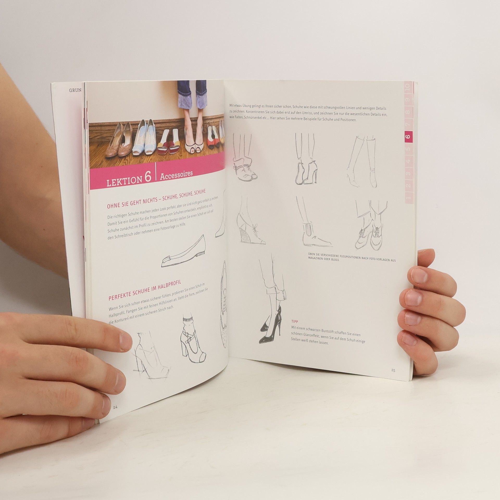Der schnellste Einstieg in die Welt der Modezeichnung. Sie wollen Fashion geschickt in Szene setzen? Hier lernen Sie, Modefiguren schnell und einfach erstellen, verschiedene Texturen wie Jeans, Strick, Leinen realistisch darzustellen und modische Accessoires gekonnt und blitzschnell aufs Papier zu bringen. Das Buch ist in 10 Lektionen augeteilt, für die Sie jeweils höchstens 30 min brauchen! 64 Seiten, 17 x 22 cm, Broschur mit Klappen