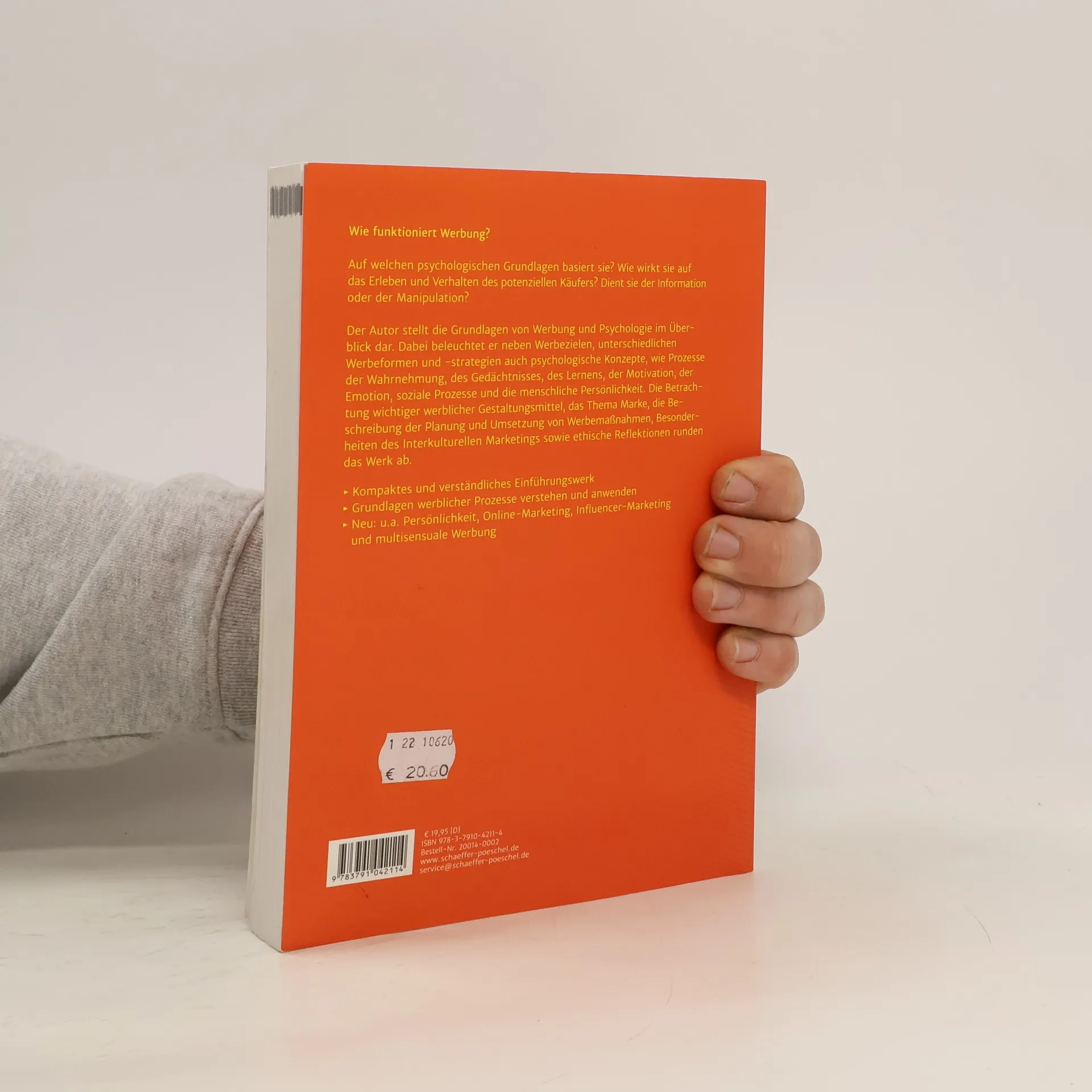 Auf welchen psychologischen Grundlagen basiert Werbung? Wie wirkt sie auf das Erleben und Verhalten des potenziellen Käufers? Dient sie der Information oder der Manipulation? Der Autor stellt die Grundlagen von Werbung und Psychologie im Überblick dar. Dabei beleuchtet er neben Werbezielen, unterschiedlichen Werbeformen und -strategien auch psychologische Konzepte wie Prozesse der Wahrnehmung, des Gedächtnisses, des Lernens, der Motivation, der Emotion, soziale Prozesse und die menschliche Persönlichkeit. Die Betrachtung wichtiger werblicher Gestaltungsmittel, das Thema Marke, die Beschreibung der Planung und Umsetzung von Werbemaßnahmen, Besonderheiten des Interkulturellen Marketings und Werbeethik runden das Buch ab. In der zweiten Auflage um aktuelle Themen wie Online- und Influencer-Marketing sowie Multisensuale Werbung ergänzt.