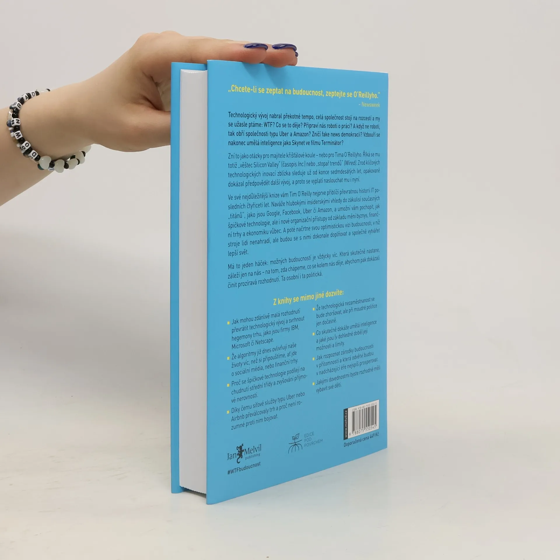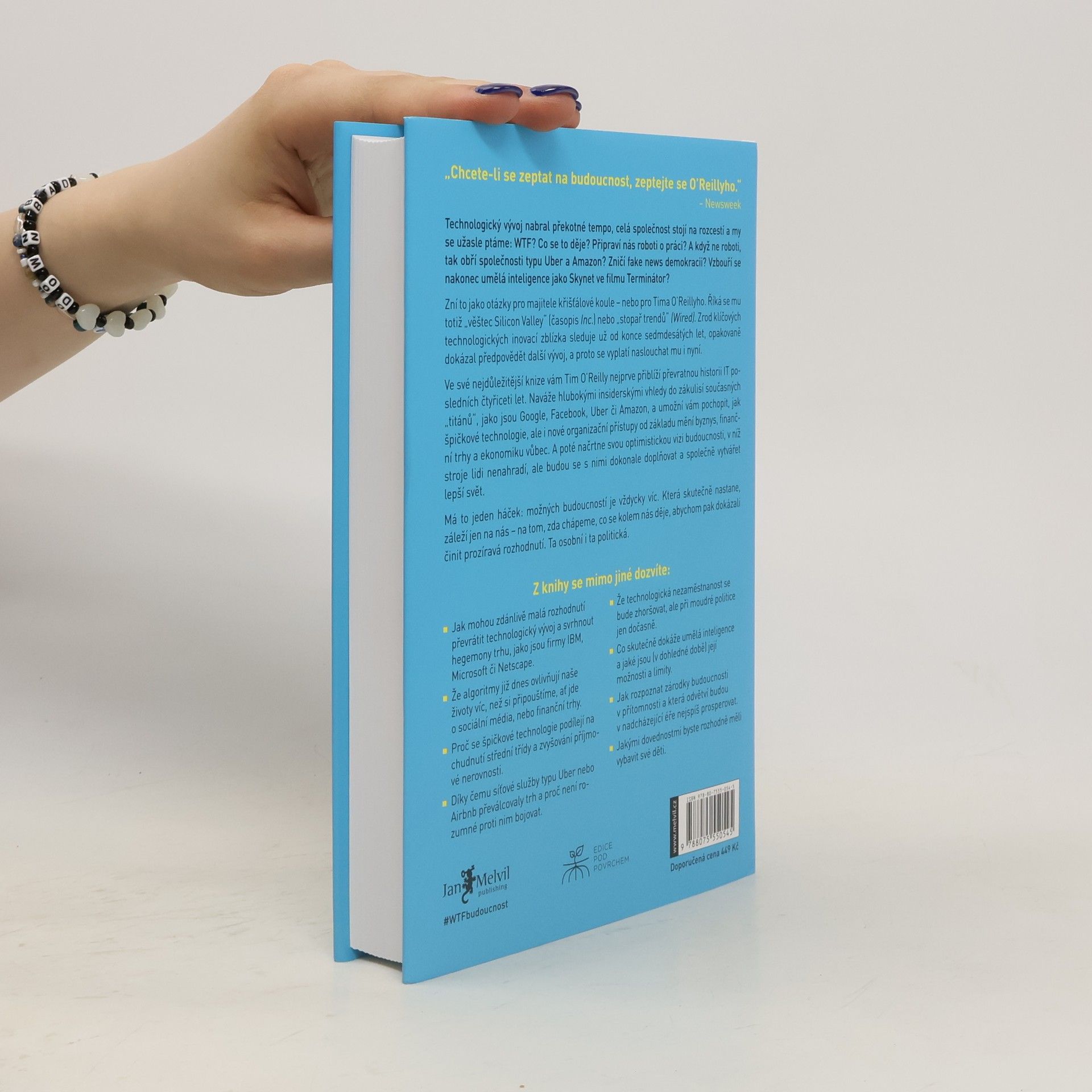 Technologický vývoj nabírá tempo, celá společnost stojí na rozcestí a my se užasle ptáme: WTF? Co se to děje? Připraví nás roboti o práci? A když ne roboti, tak obří společnosti typu Uber a Amazon? Zničí fake news demokracii? Vzbouří se nakonec umělá inteligence jako Skynet ve filmu Terminátor? Otázky jako pro majitele křišťálové koule... Ale přesně takovou pověst Tim O’Reilly má – „věštec Silicon Valley“ (časopis Inc.) nebo „stopař trendů“ (Wired). Zrod klíčových technologických inovací sleduje zblízka už od konce sedmdesátých let, opakovaně předpověděl další vývoj. Vyplatí se naslouchat mu i nyní.