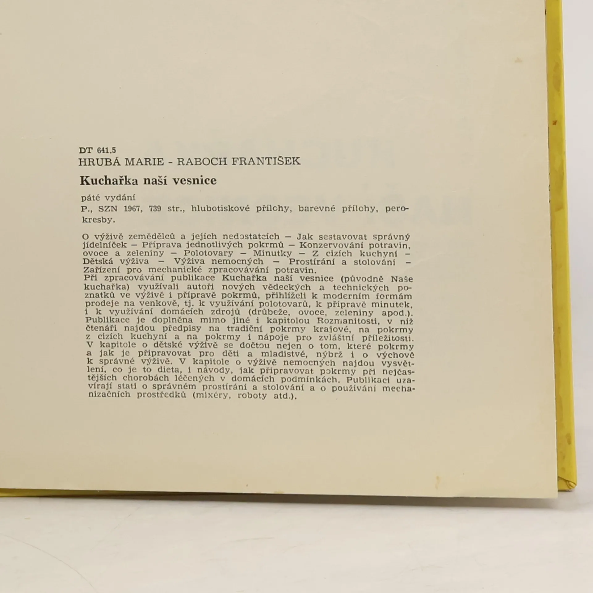 Rozsáhlá kuchařka zabývající se polévkami, zavářky, omáčkami, masem, mlékem, vejci, moučníky a řadou jiných potravin.