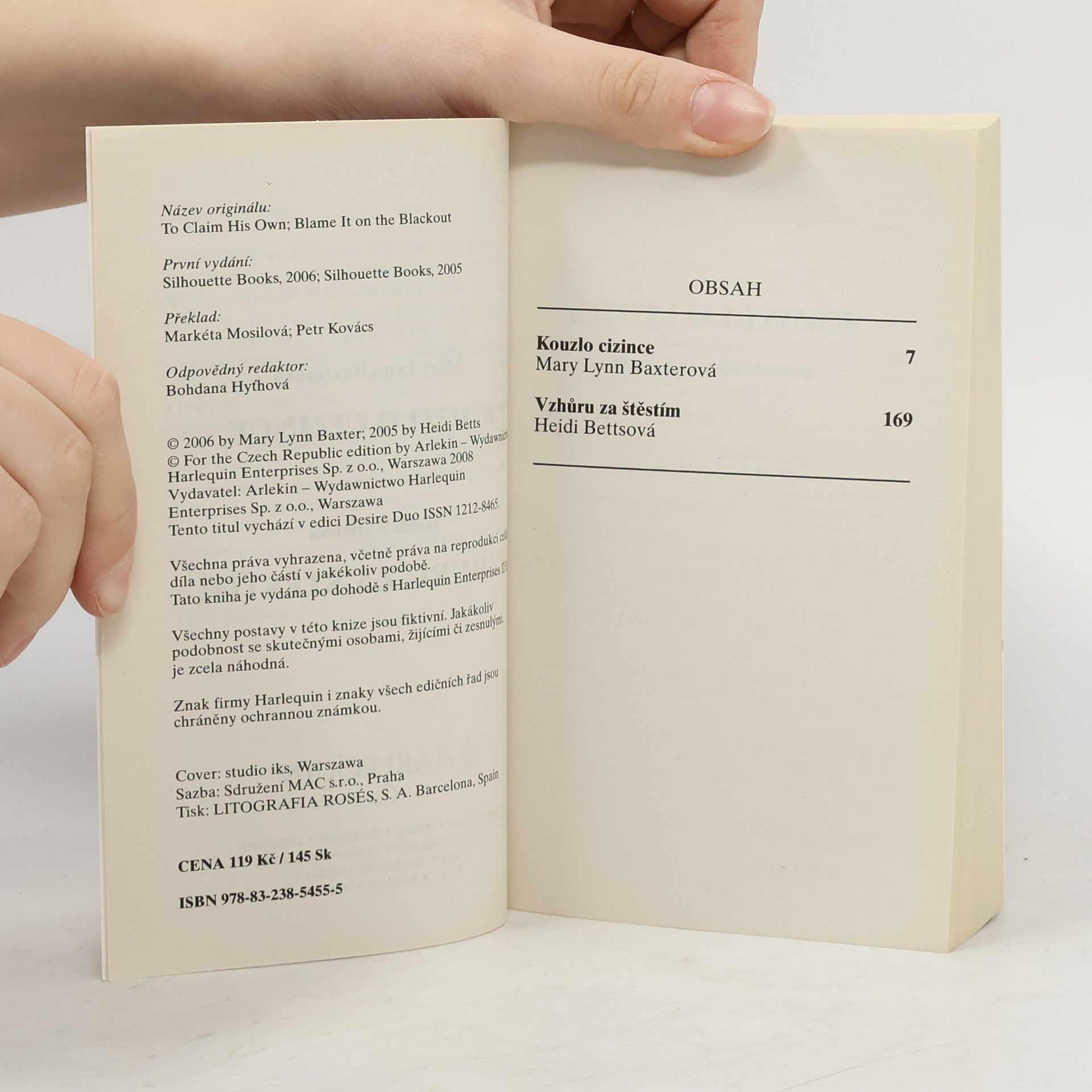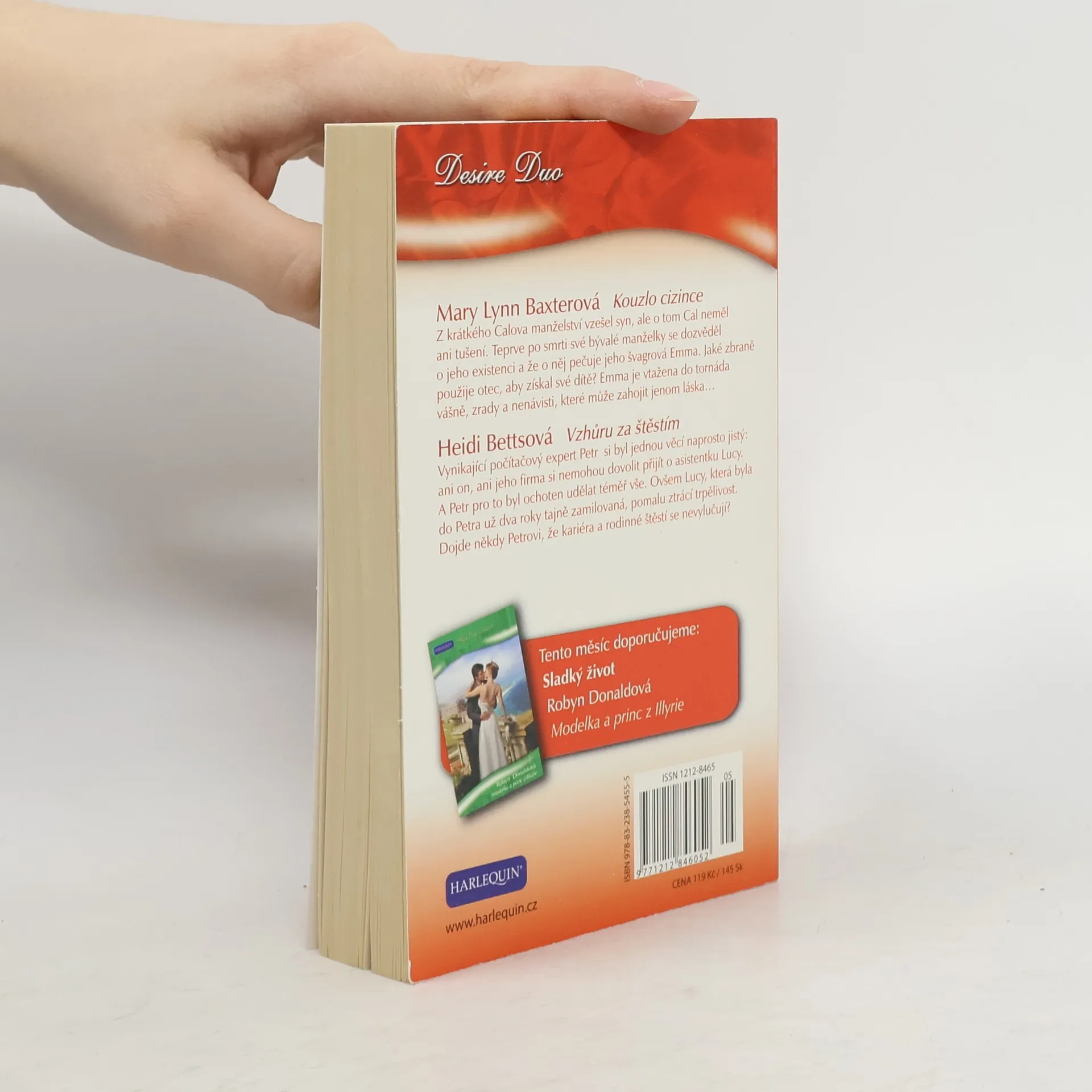Kouzlo cizince - Mary Lynn Baxter Z krátkého Calova manželství vzešel syn, ale o tom Cal neměl ani tušení. Teprve po smrti své bývalé manželky se dozvěděl o jeho existenci a že o něj pečuje jeho švagrová Emma. Jaké zbraně použije otec, aby získal své dítě? Emma je vtažena do tornáda vášně, zrady a nenávisti, které může zahojit jenom láska Vzhůru za štěstím - Heidi Betts Vynikající počítačový expert Petr si byl jednou věcí naprosto jistý: ani on, ani jeho firma si nemohou dovolit přijít o asistentku Lucy. A Petr pro to byl ochoten udělat téměř vše. Ovšem Lucy, která byla do Petra už dva roky tajně zamilovaná, pomalu ztrácí trpělivost. Dojde někdy Petrovi, že kariéra a rodinné štěstí se nevylučují?