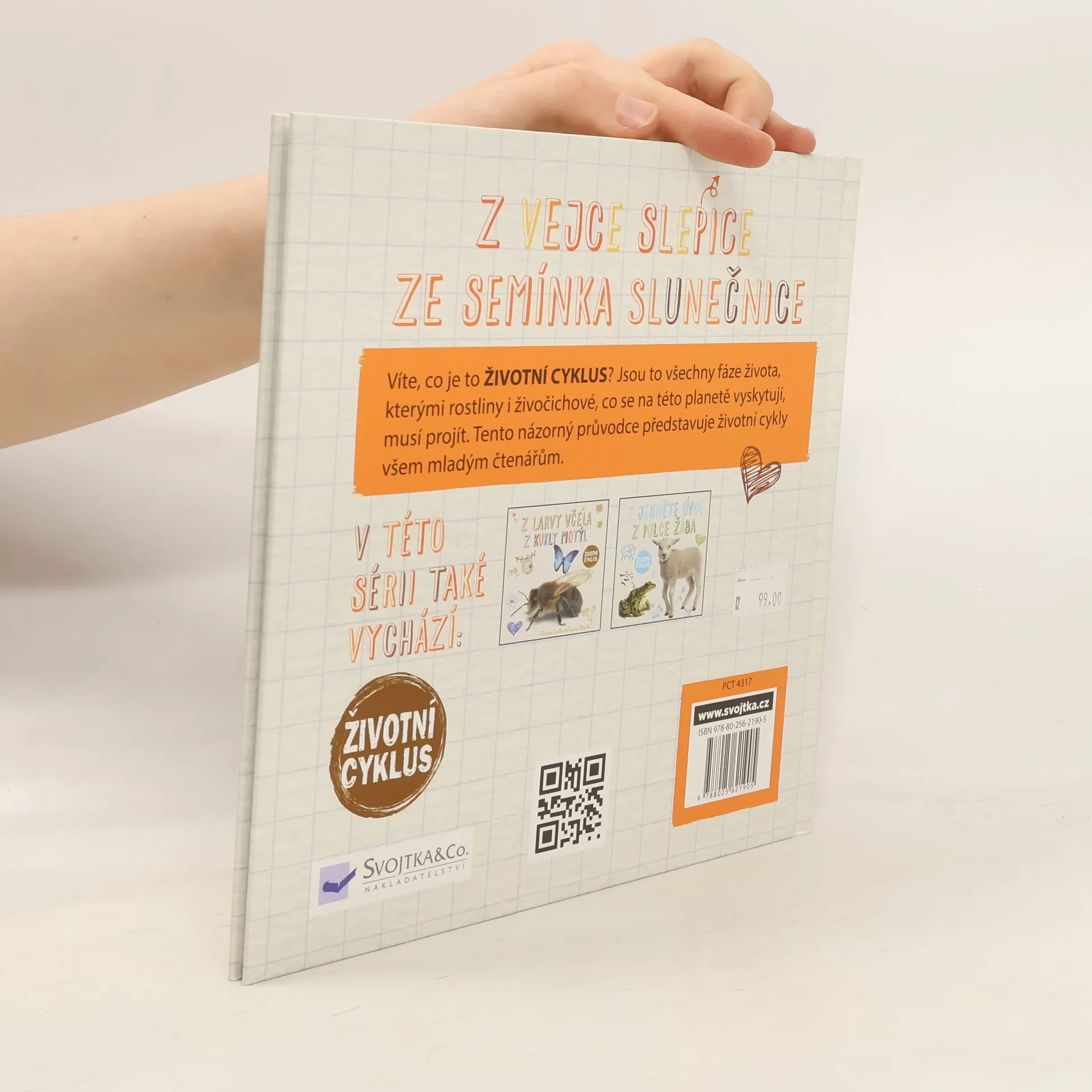 Přírodní cykly, cykly života... Přiučte se o tom, jak probíhá život živočichů a rostlin, které člověk potká v přírodě nebo využívá v zemědělství. Během růstu, dospívání a stárnutí procházejí lidé, zvířata i rostliny určitými rozdílnými fázemi. Říká se tomu přírodní cykly, cykly života... Přiučte se o tom, jak probíhá život živočichů a rostlin, které člověk potká v přírodě nebo využívá v zemědělství. V tomto svazku najdete životní cyklus slepice a slunečnice. Od vejce přes vyklubání po snůšku vlastních vajec; od semene přes růst po zasetí nových semínek. Informativní texty se snadno čtou a přehledná znázornění napomáhají pochopení dané problematiky. Díky tomu se tato knižní série bude líbit především mladým čtenářům, kteří se chtějí dozvědět víc o světě, který je obklopuje.